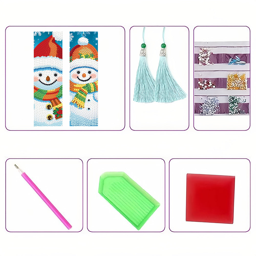 2St. Weihnachten Schneemann Leder Lesezeichen Set Diamond Painting