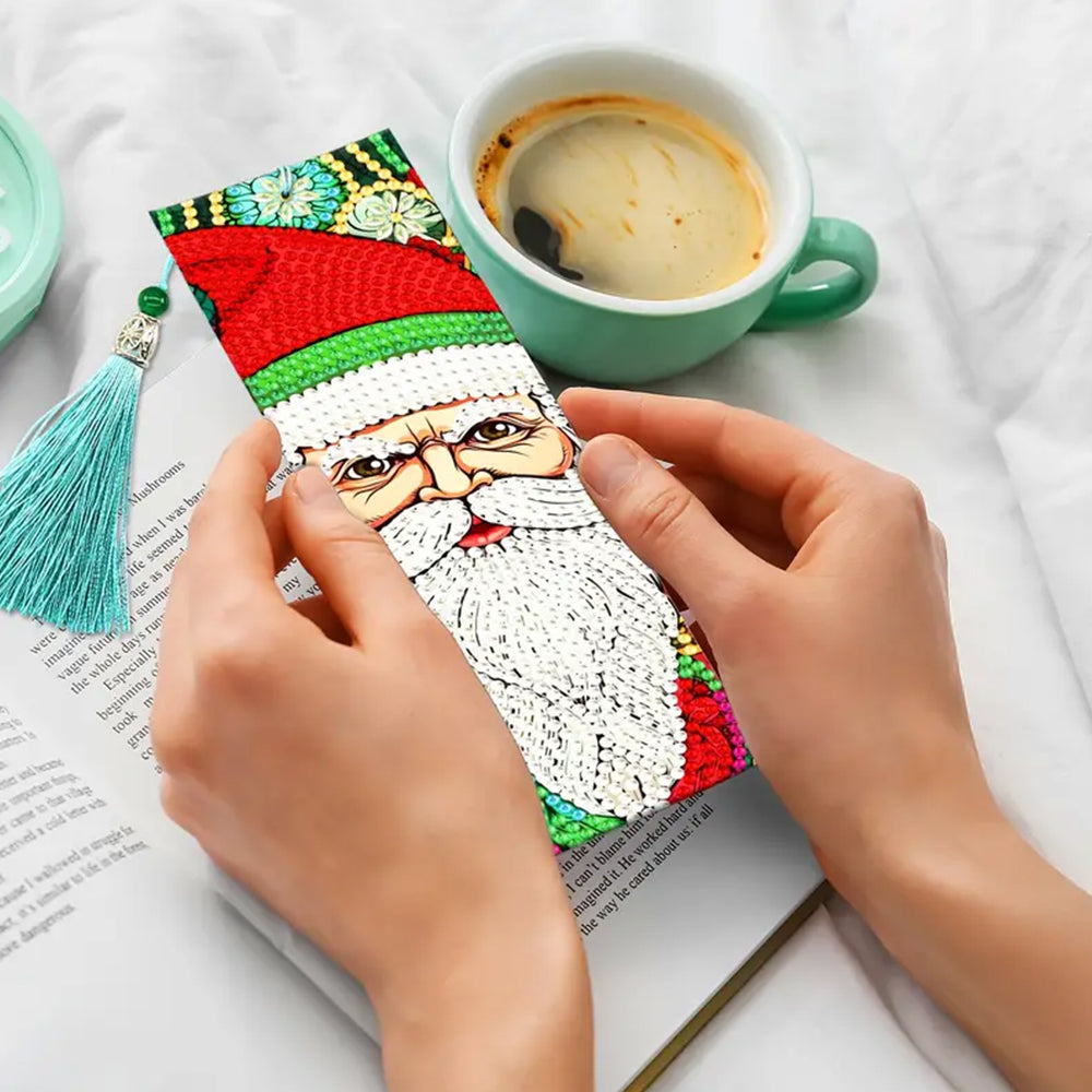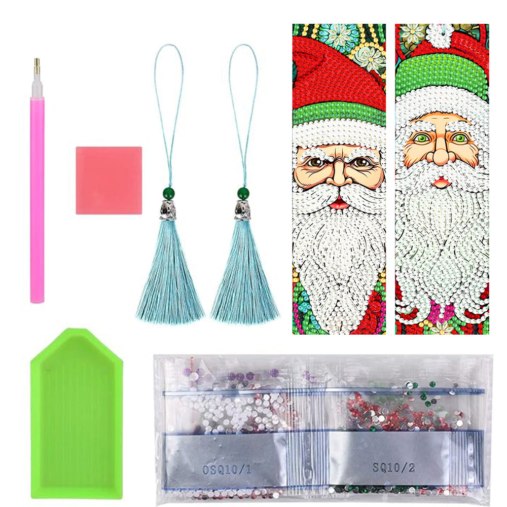 2St. Weihnachtsmann mit Weißem Bart Leder Lesezeichen Set Diamond Painting