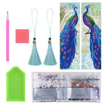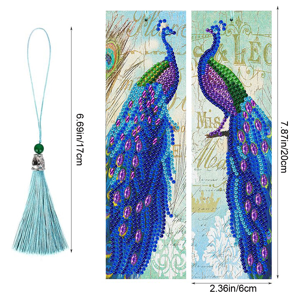 2St. Wunderschönes Blaues Pfau Leder Lesezeichen Set Diamond Painting