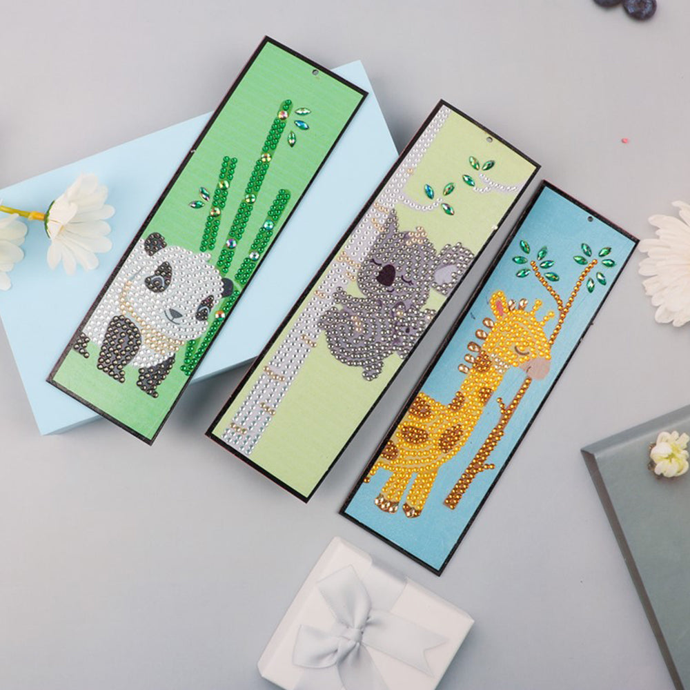 3St. Cartoon Giraffe, Panda und Koala Leder Lesezeichen Set Diamond Painting