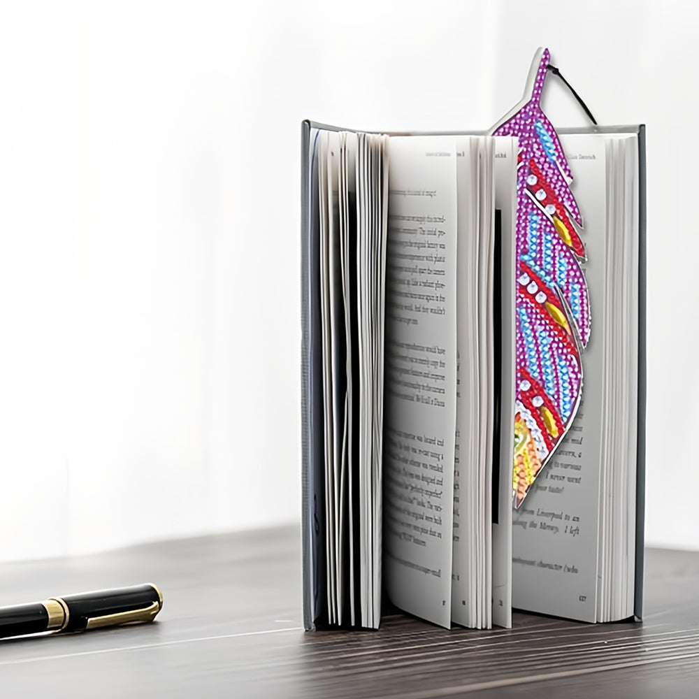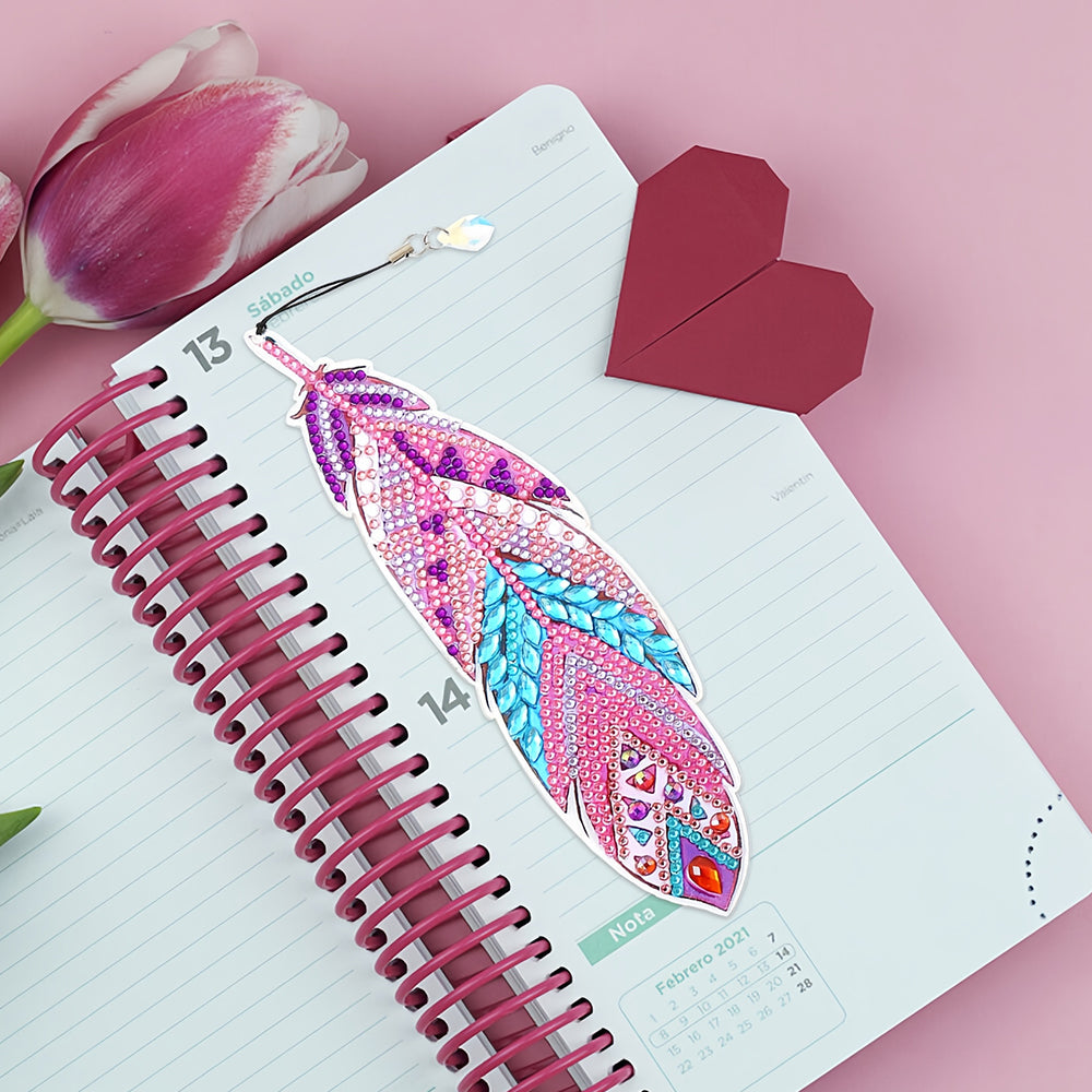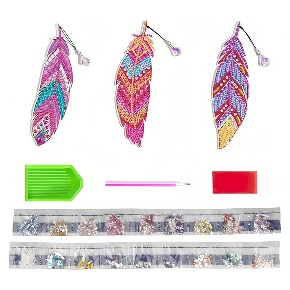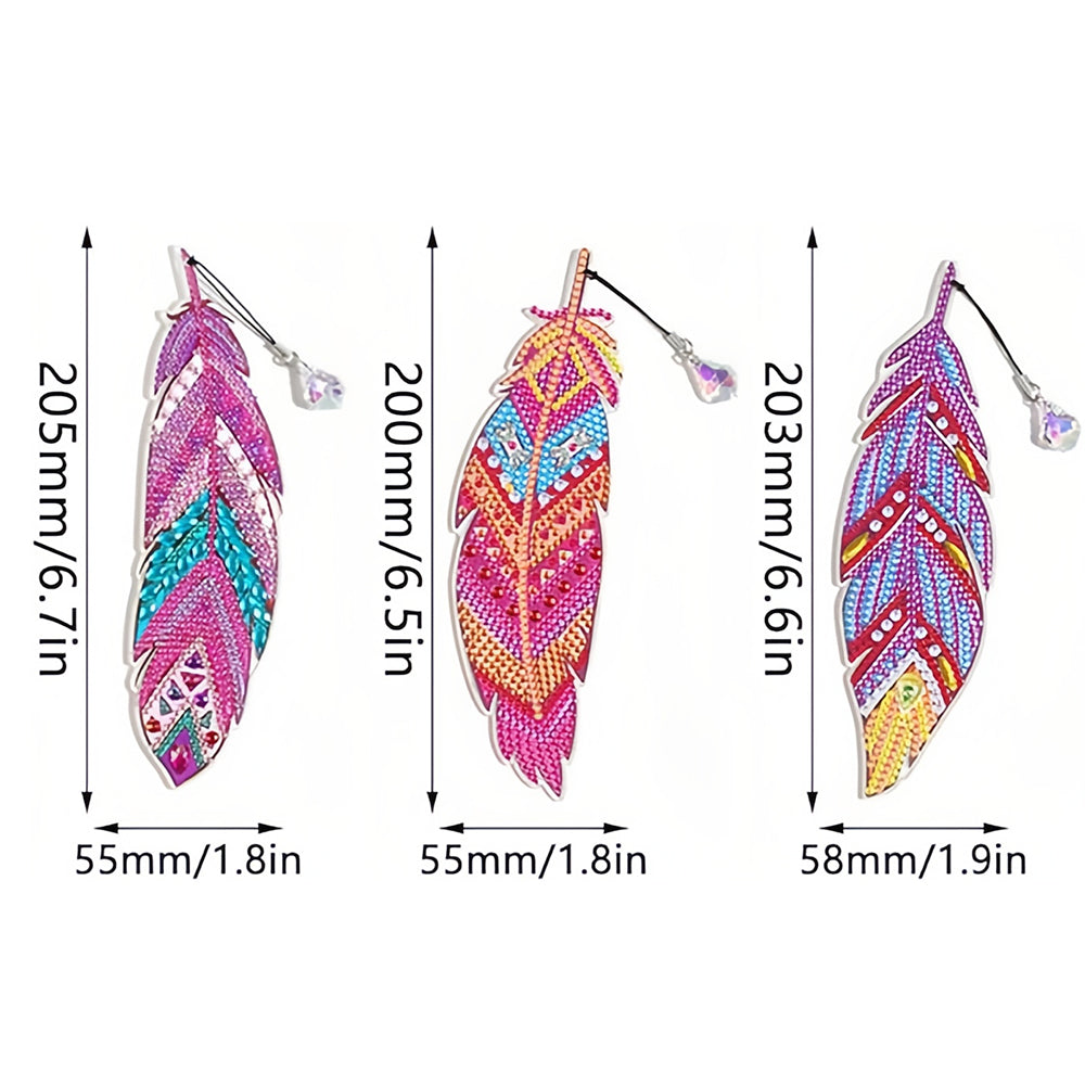 3St. Lila und Rote Federn Acryl Lesezeichen Set Diamond Painting