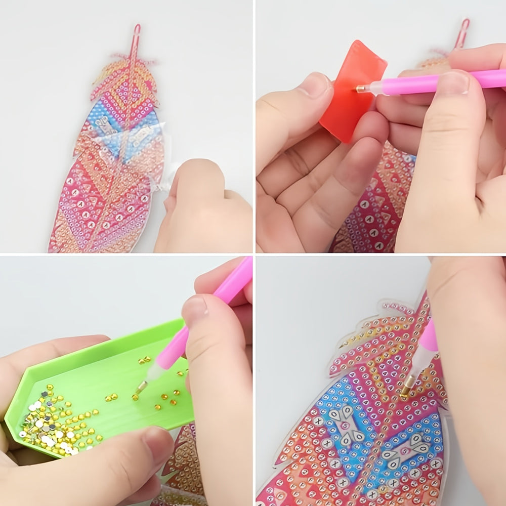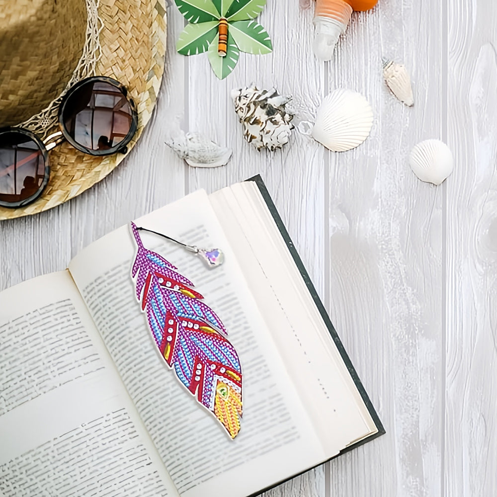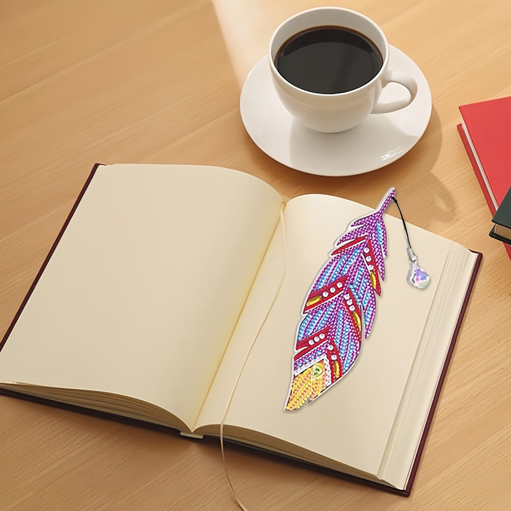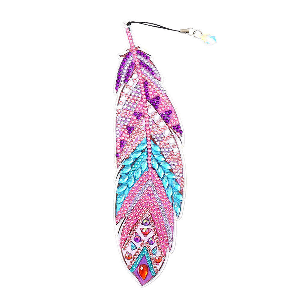 3St. Lila und Rote Federn Acryl Lesezeichen Set Diamond Painting