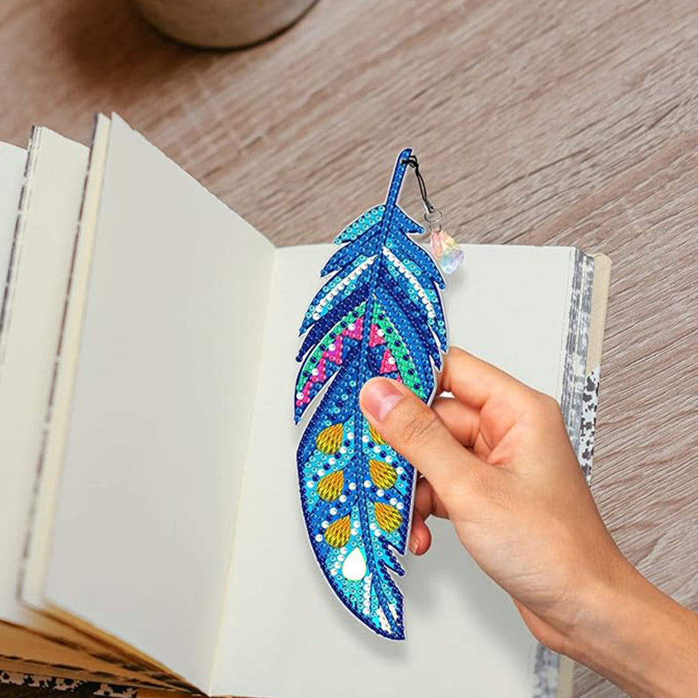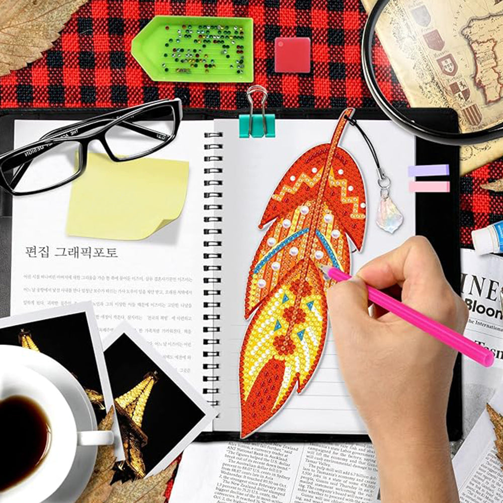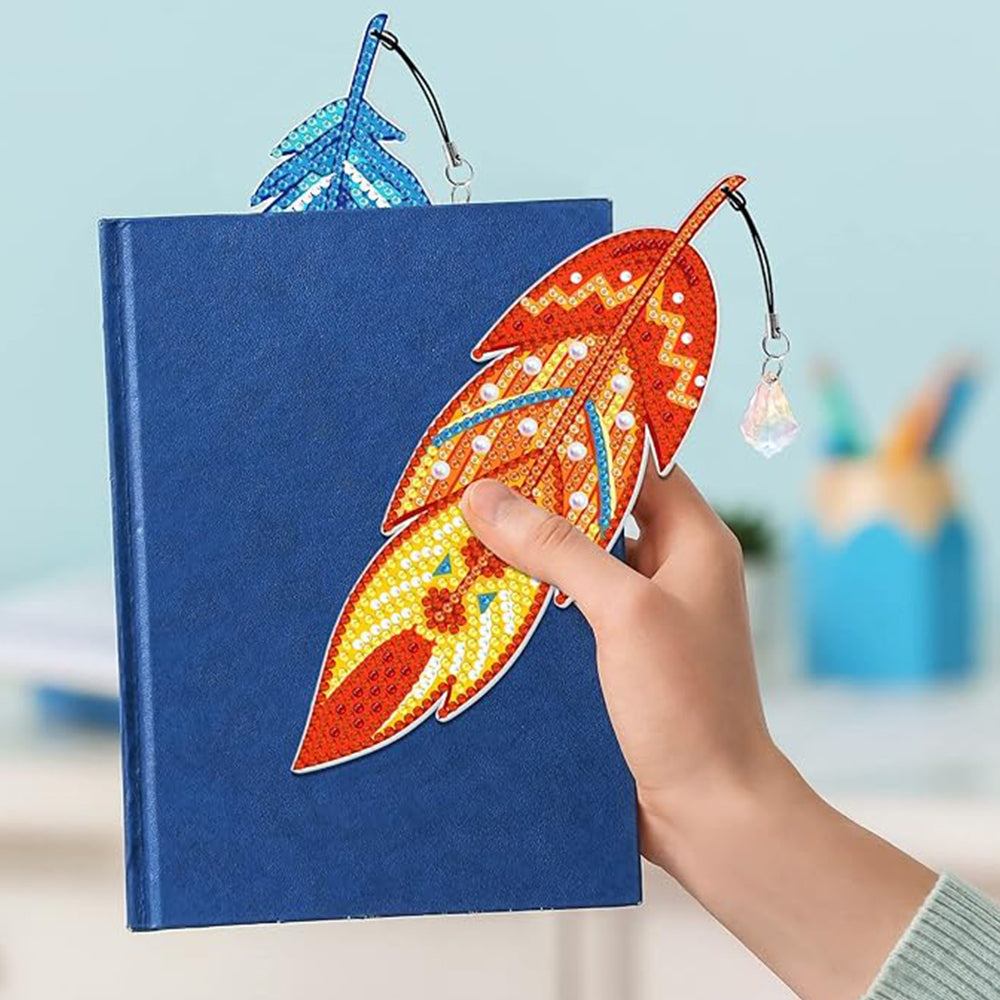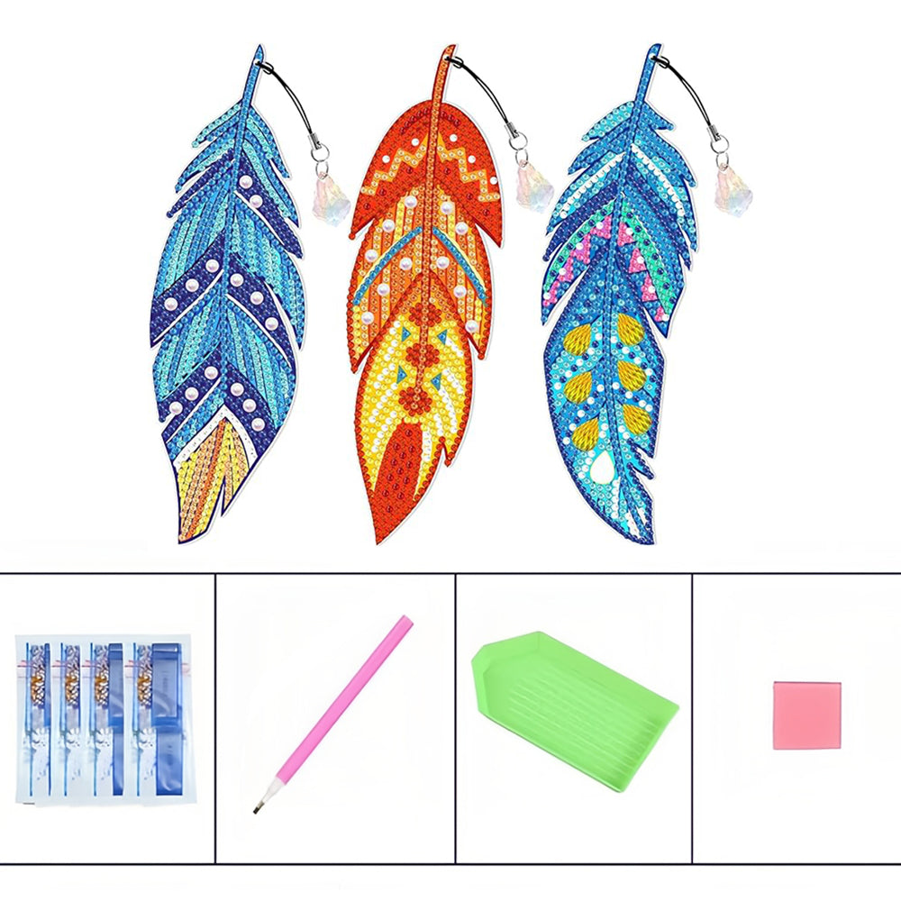 3St. Schöne Federn Acryl Lesezeichen Set Diamond Painting