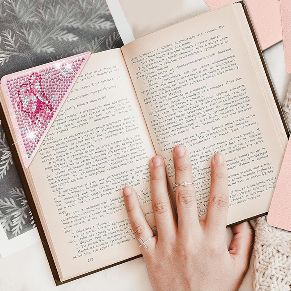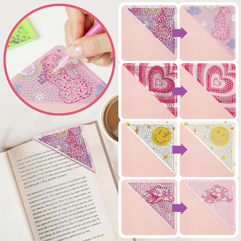 4St. Beliebte Herz PU Ecke Abdeckung Lesezeichen Set Diamond Painting