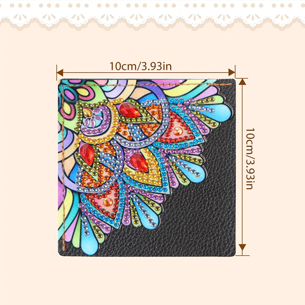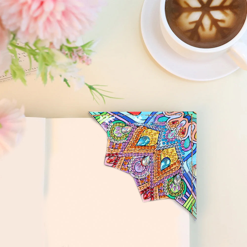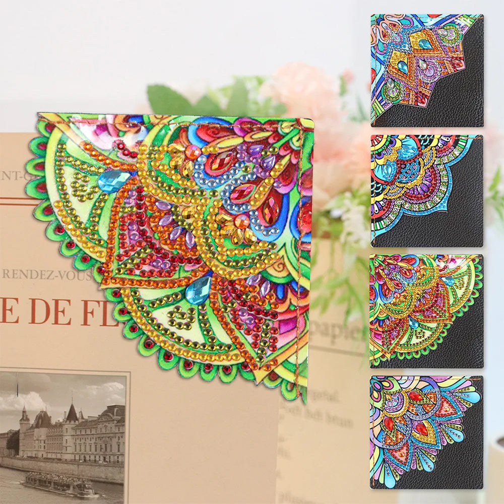 4St. Blütenblatt Geformt Mandala PU Ecke Abdeckung Lesezeichen Set Diamond Painting