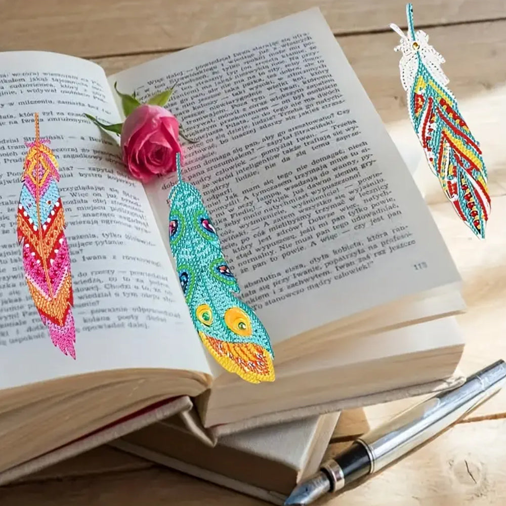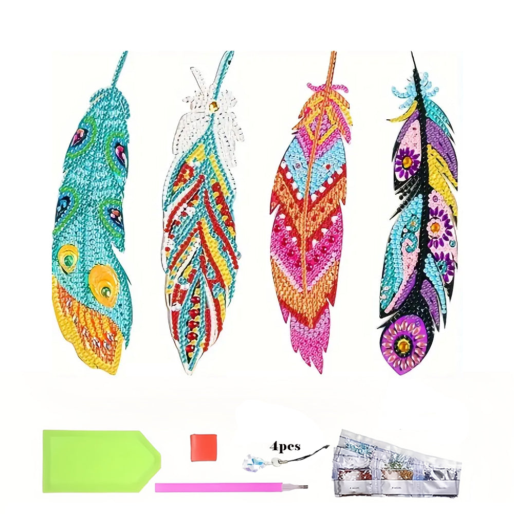 4St. Bunte Federn Acryl Lesezeichen Set Diamond Painting