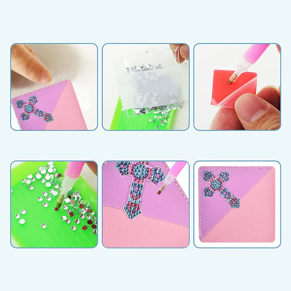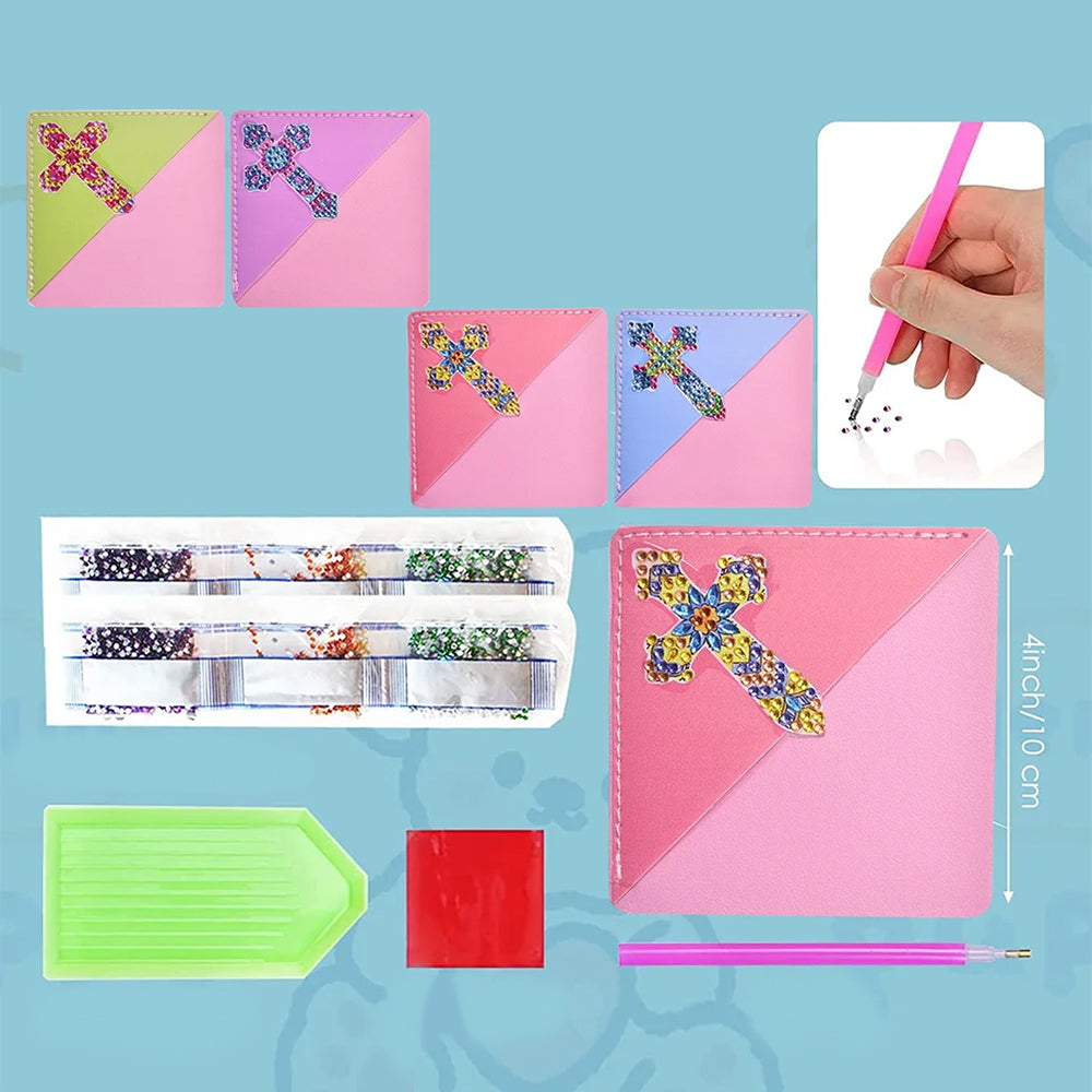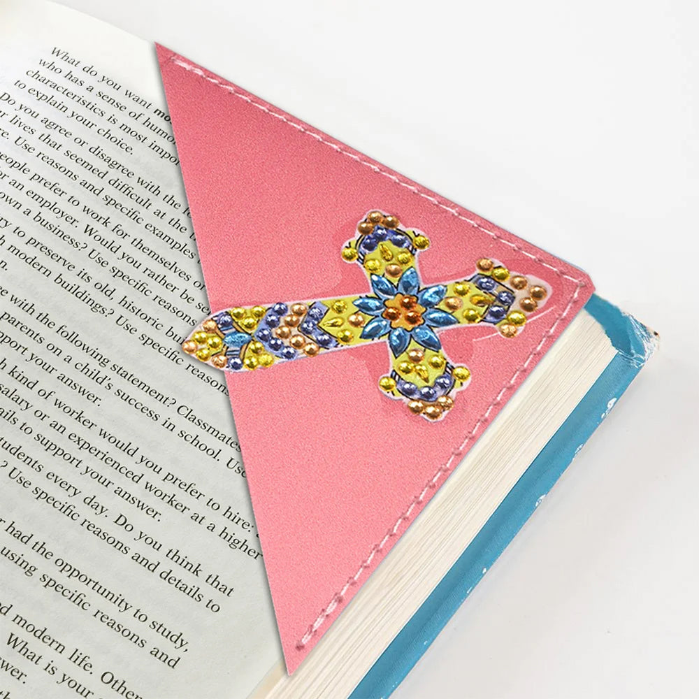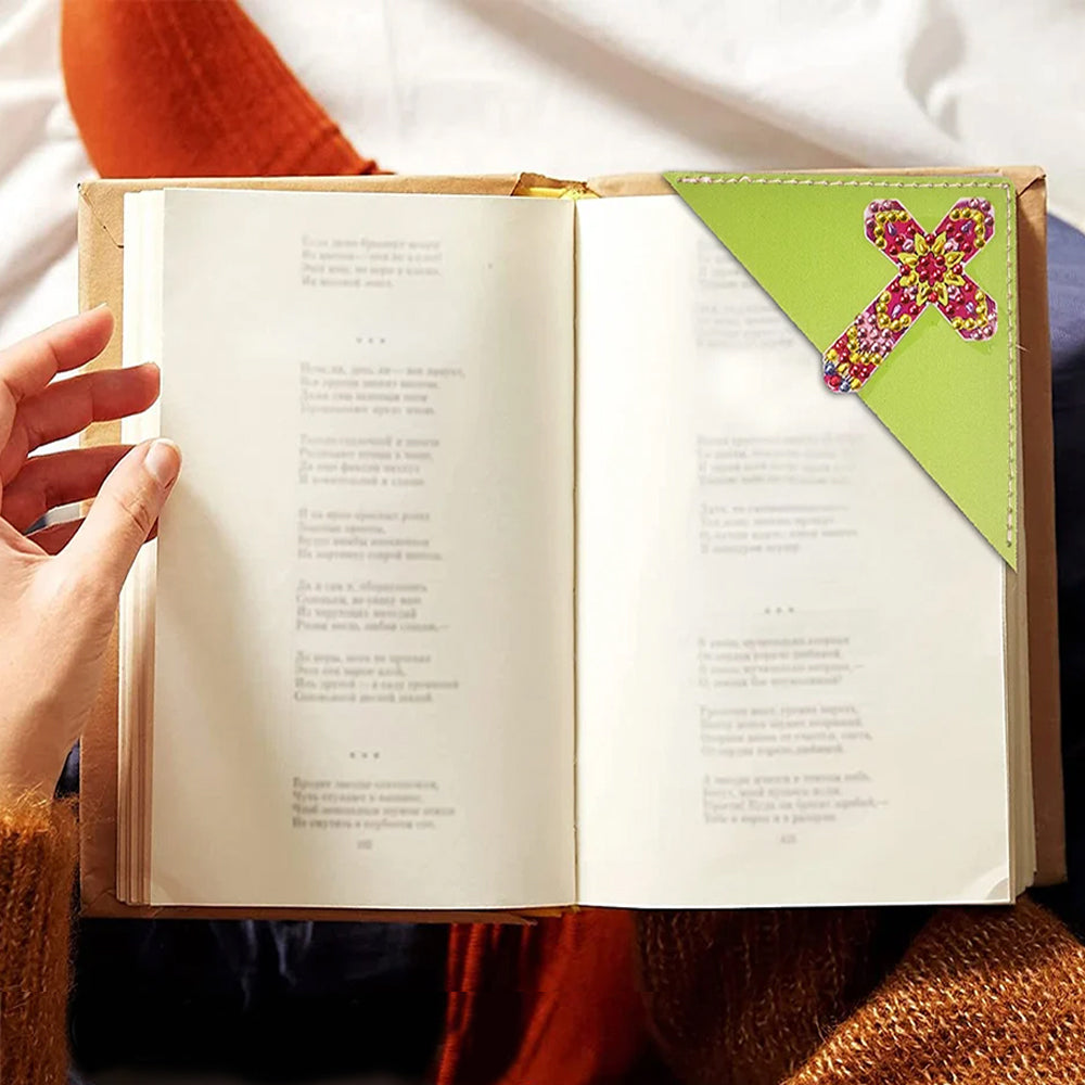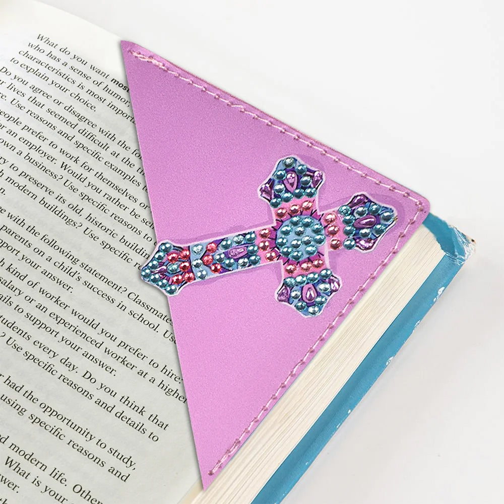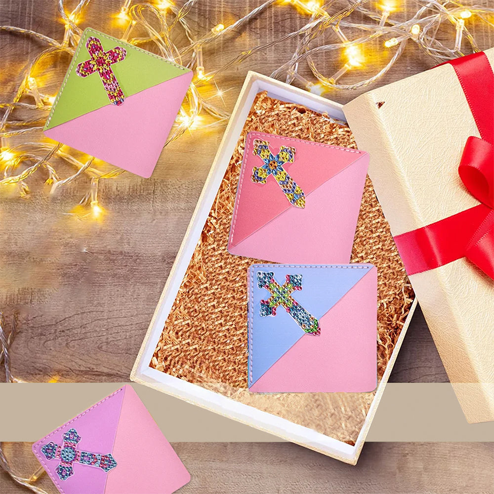 4St. Buntes Kreuz PU Ecke Abdeckung Lesezeichen Set Diamond Painting