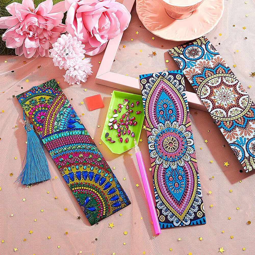4St. Buntes Mandala Leder Lesezeichen Set Diamond Painting