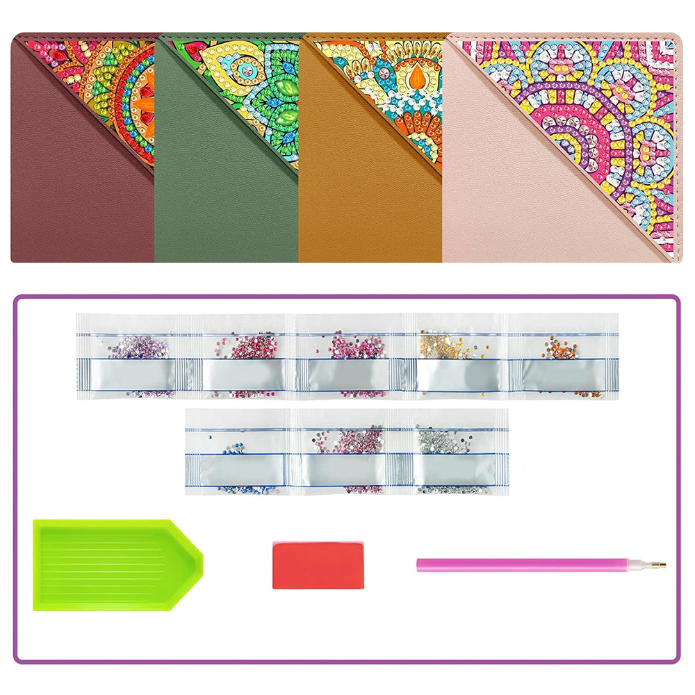 4St. Buntes Mandala PU Ecke Abdeckung Lesezeichen Set Diamond Painting