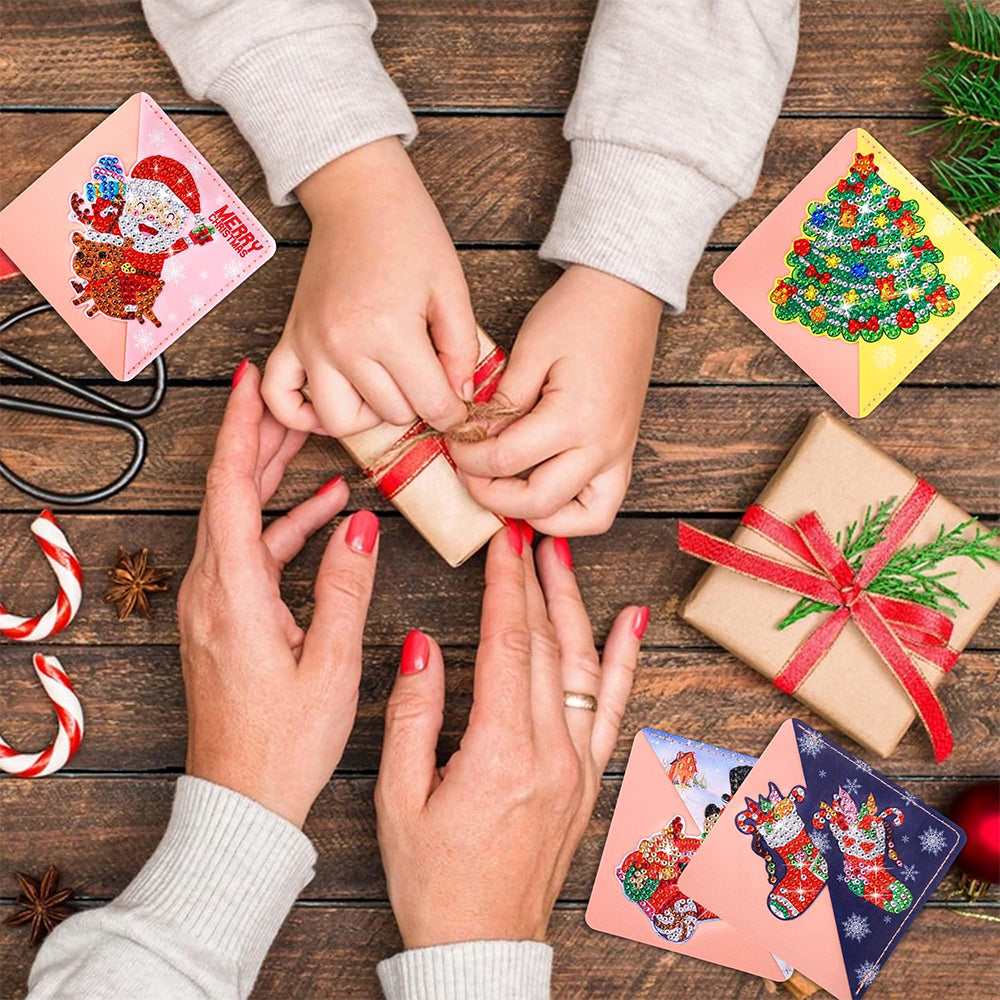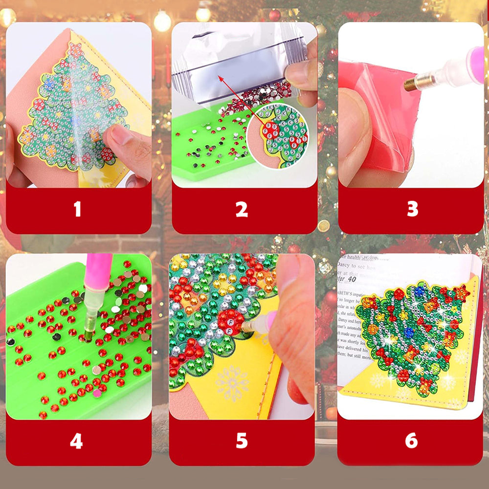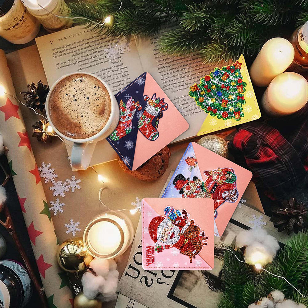 4St. Frohe Weihnachten PU Ecke Abdeckung Lesezeichen Set Diamond Painting