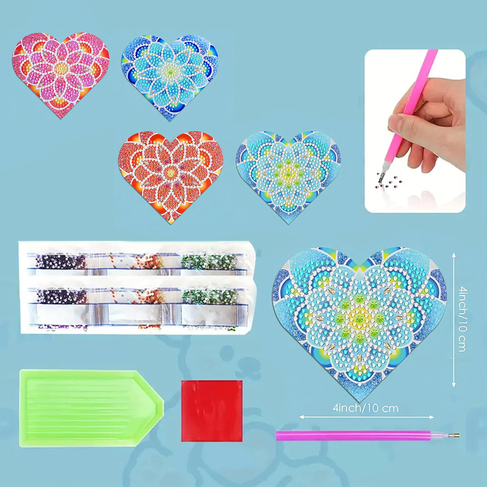 4St. Herzförmige Lotus PU Ecke Abdeckung Lesezeichen Set Diamond Painting