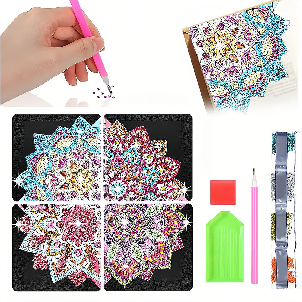 4St. Lotus Mandala PU Ecke Abdeckung Lesezeichen Set Diamond Painting