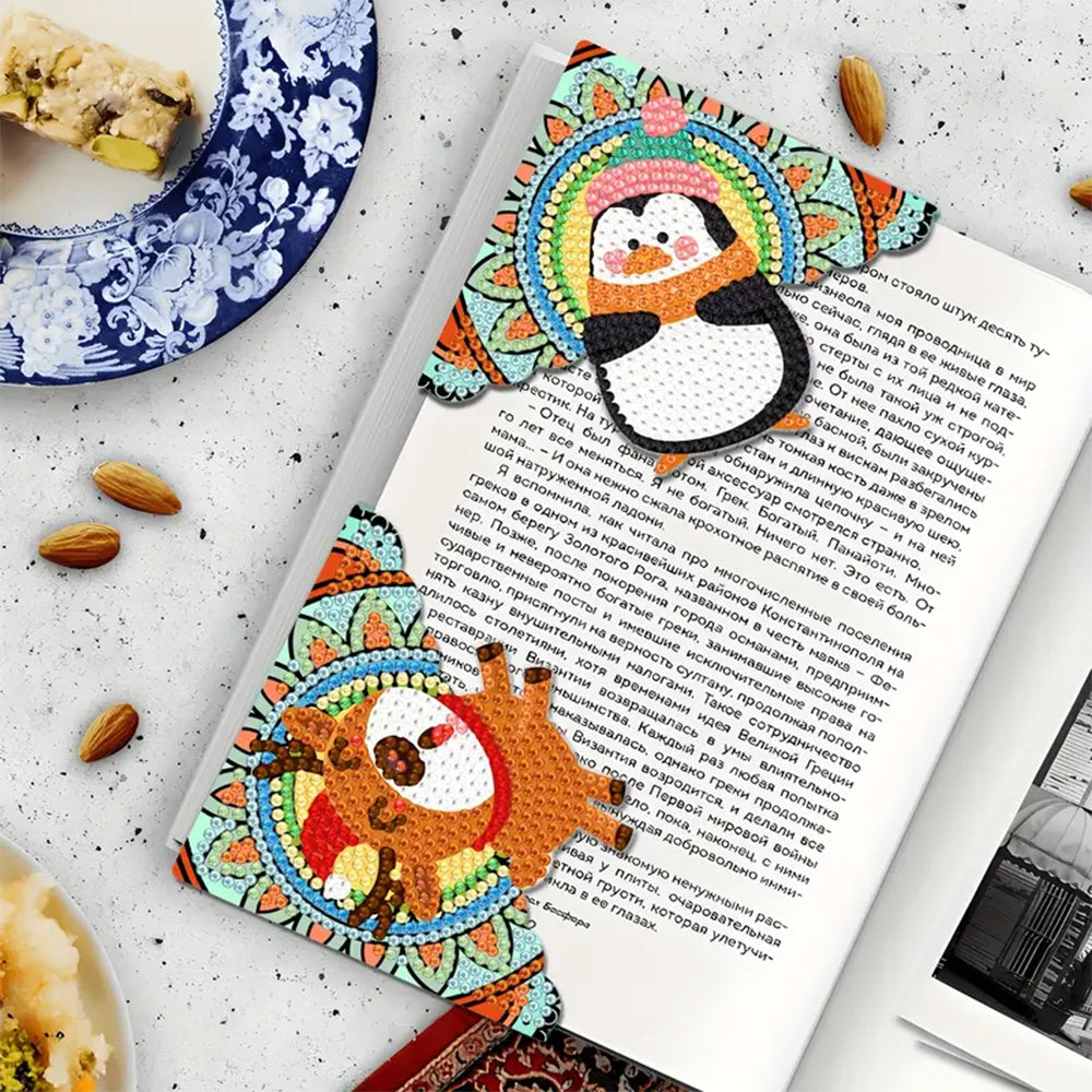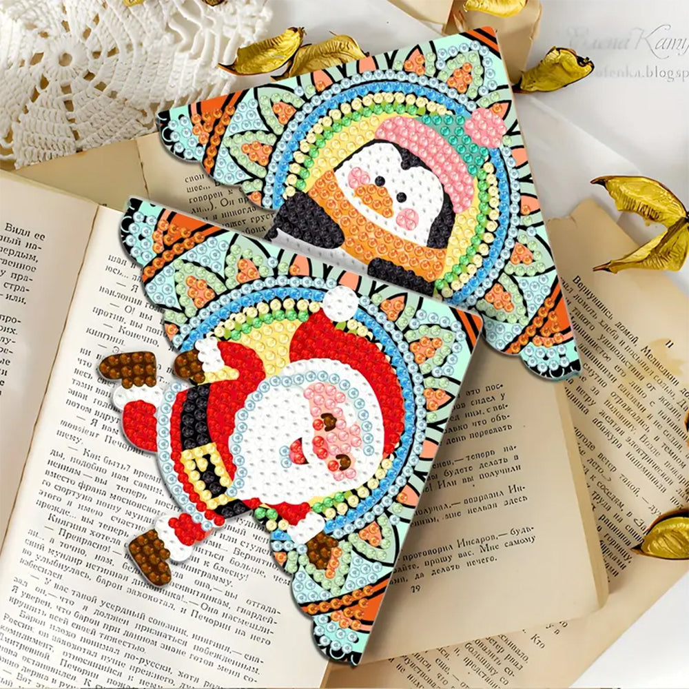 4St. Niedliche Weihnachten Tiere PU Ecke Abdeckung Lesezeichen Set Diamond Painting