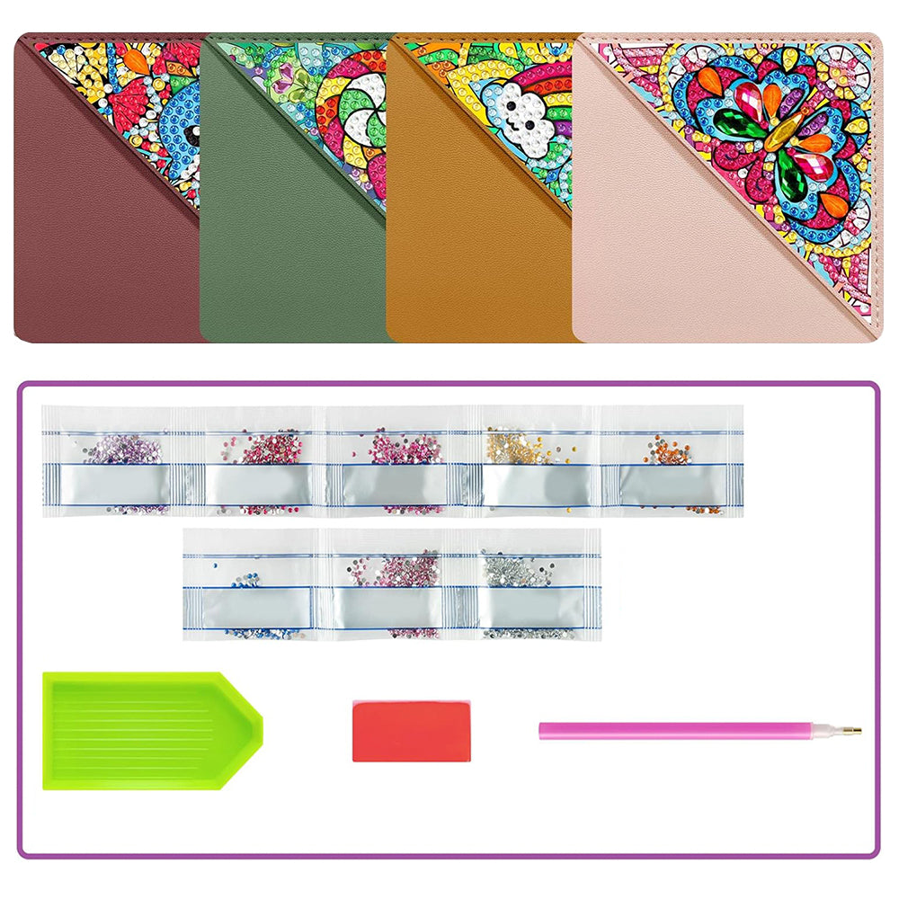 4St. Niedliches Muster PU Ecke Abdeckung Lesezeichen Set Diamond Painting