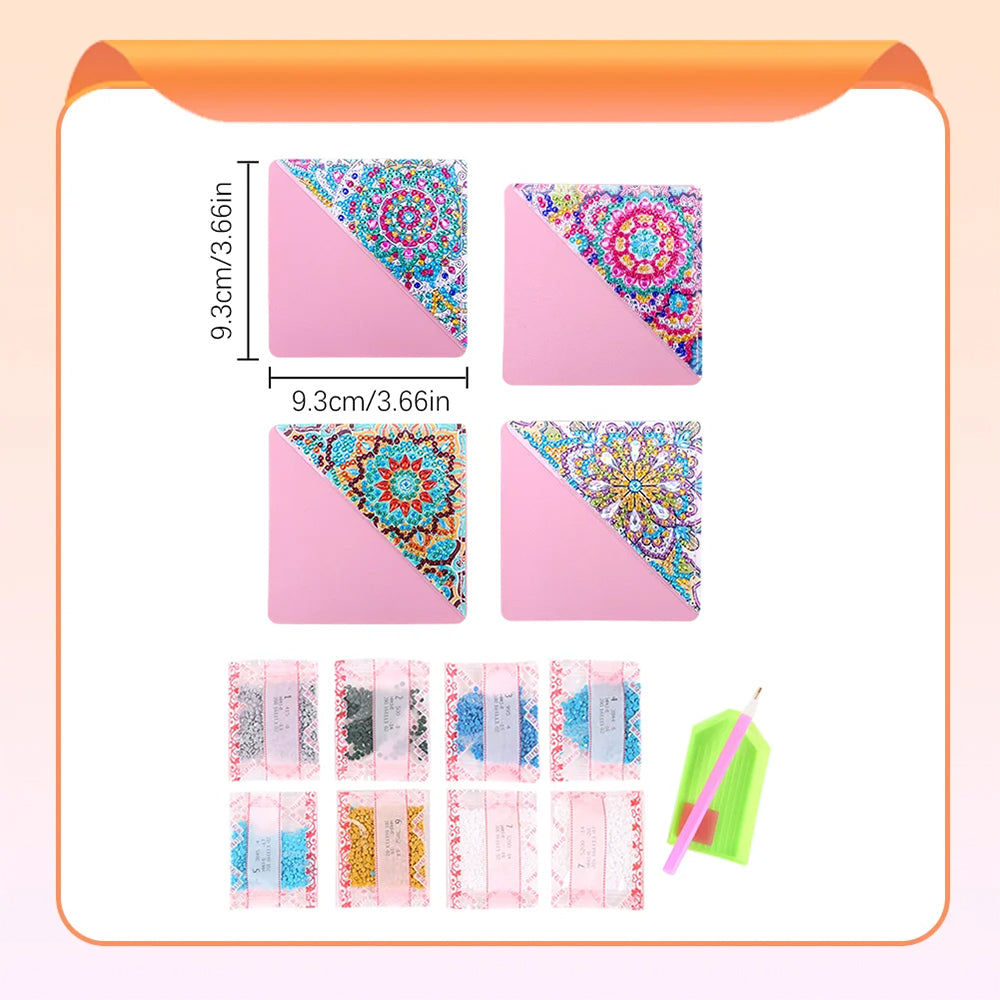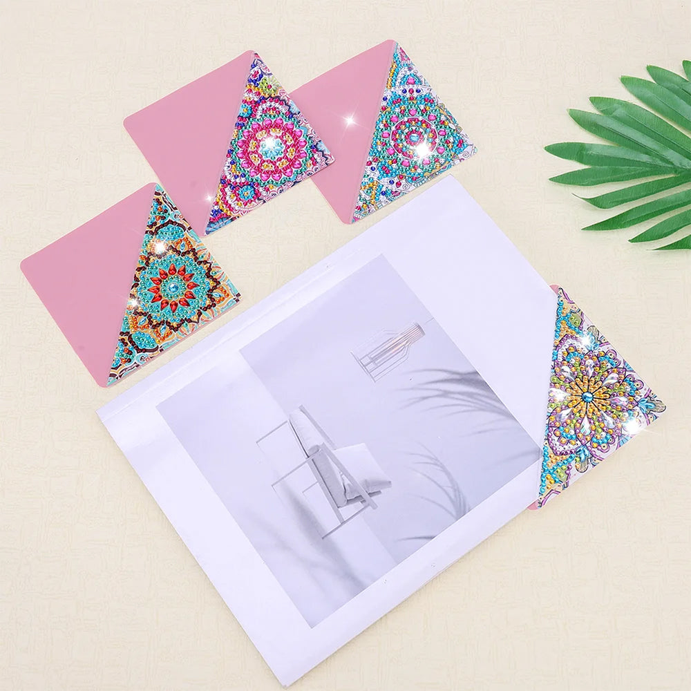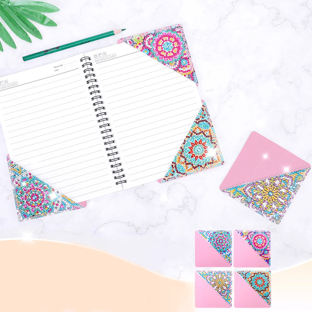 4St. Schillernde Mandala PU Ecke Abdeckung Lesezeichen Set Diamond Painting