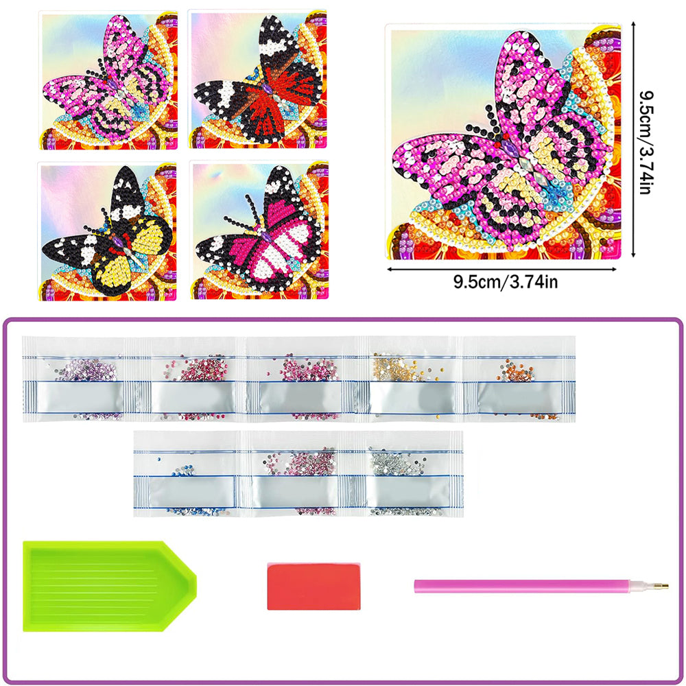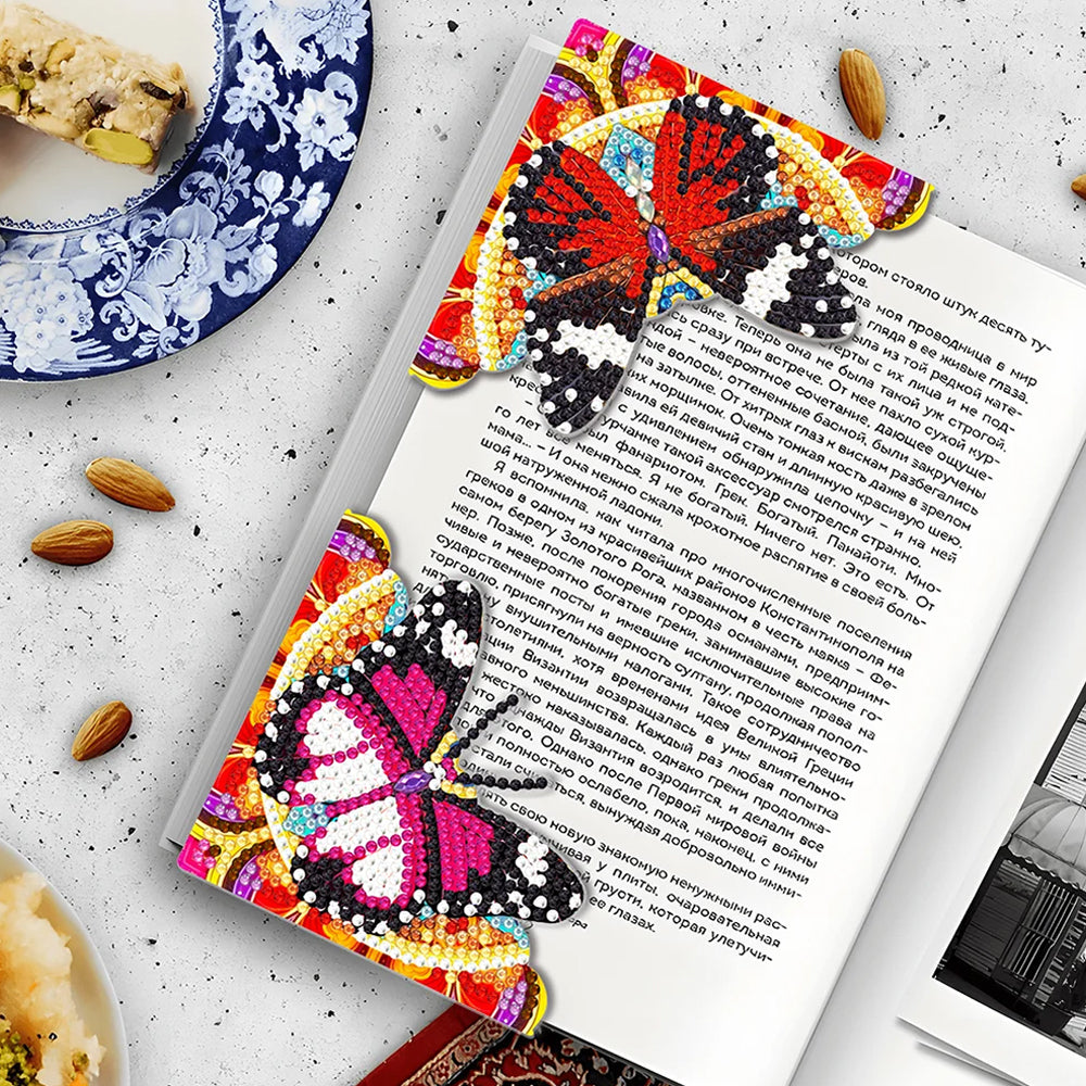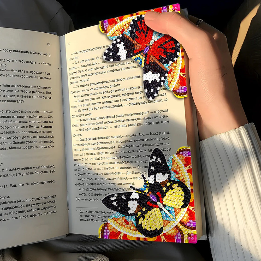4St. Schwarz und Rot Schmetterling PU Ecke Abdeckung Lesezeichen Set Diamond Painting