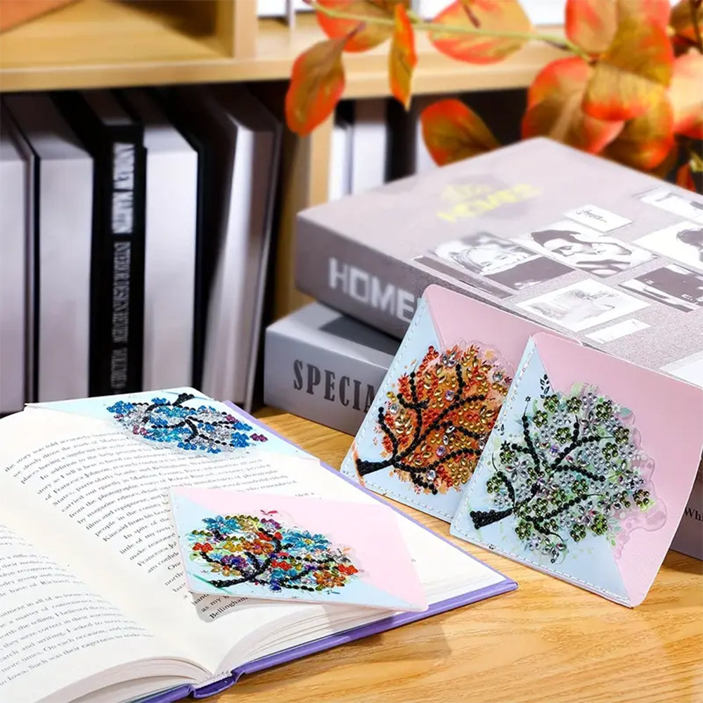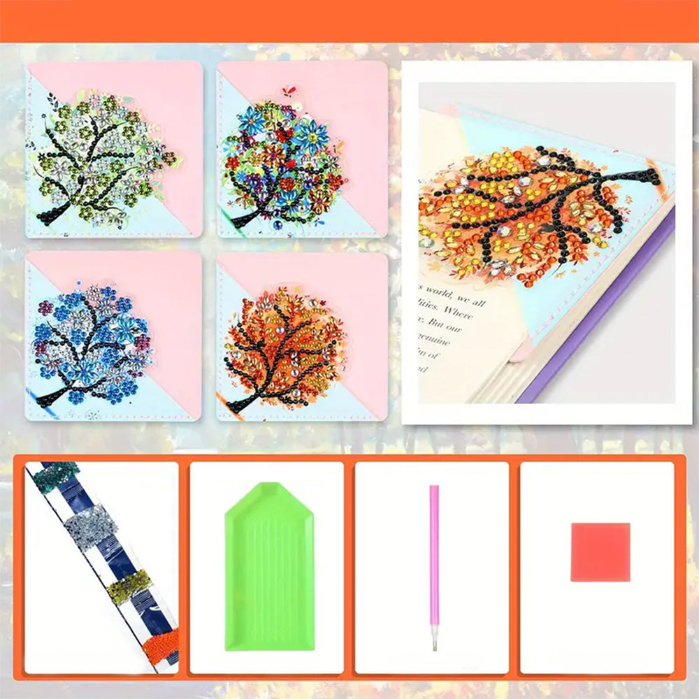 4St. Vier Jahreszeiten Baum PU Ecke Abdeckung Lesezeichen Set Diamond Painting