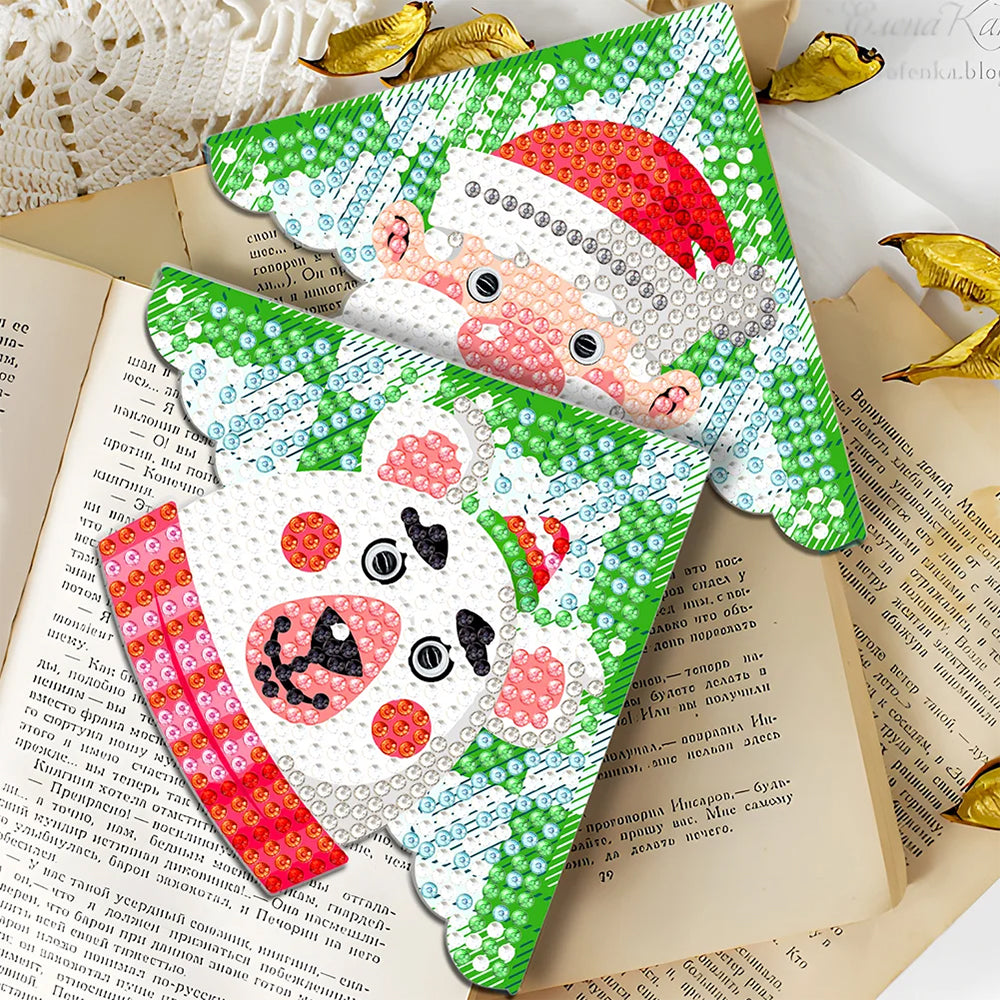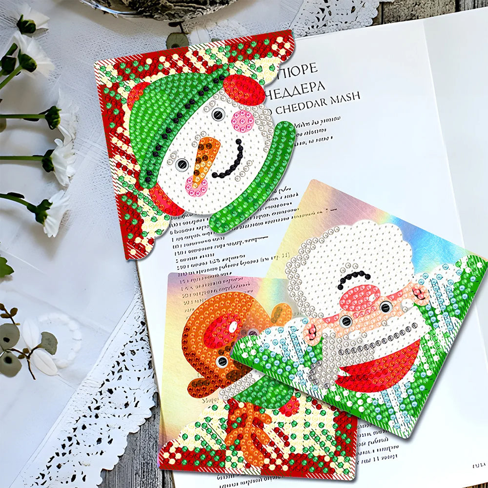 4St. Weihnachten Lächeln PU Ecke Abdeckung Lesezeichen Set Diamond Painting