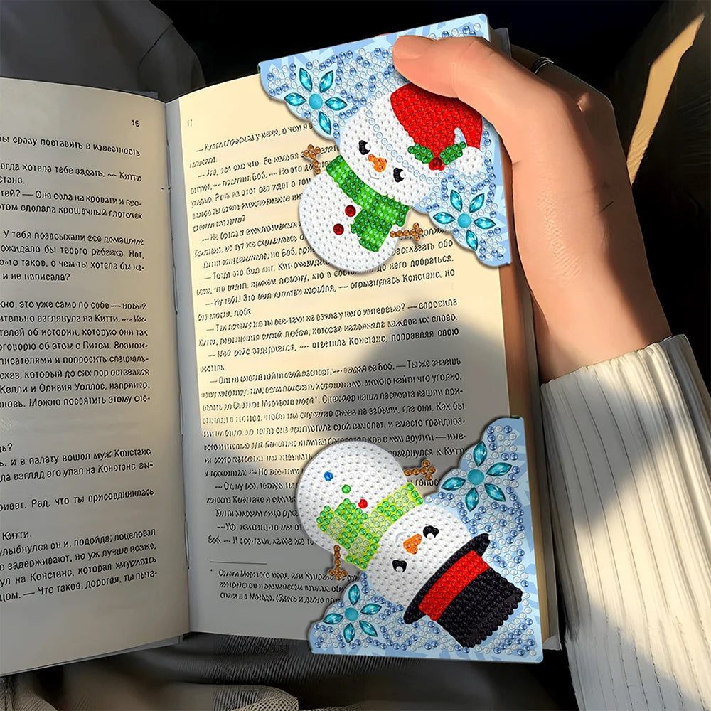 4St. Weihnachten Schneemann PU Ecke Abdeckung Lesezeichen Set Diamond Painting