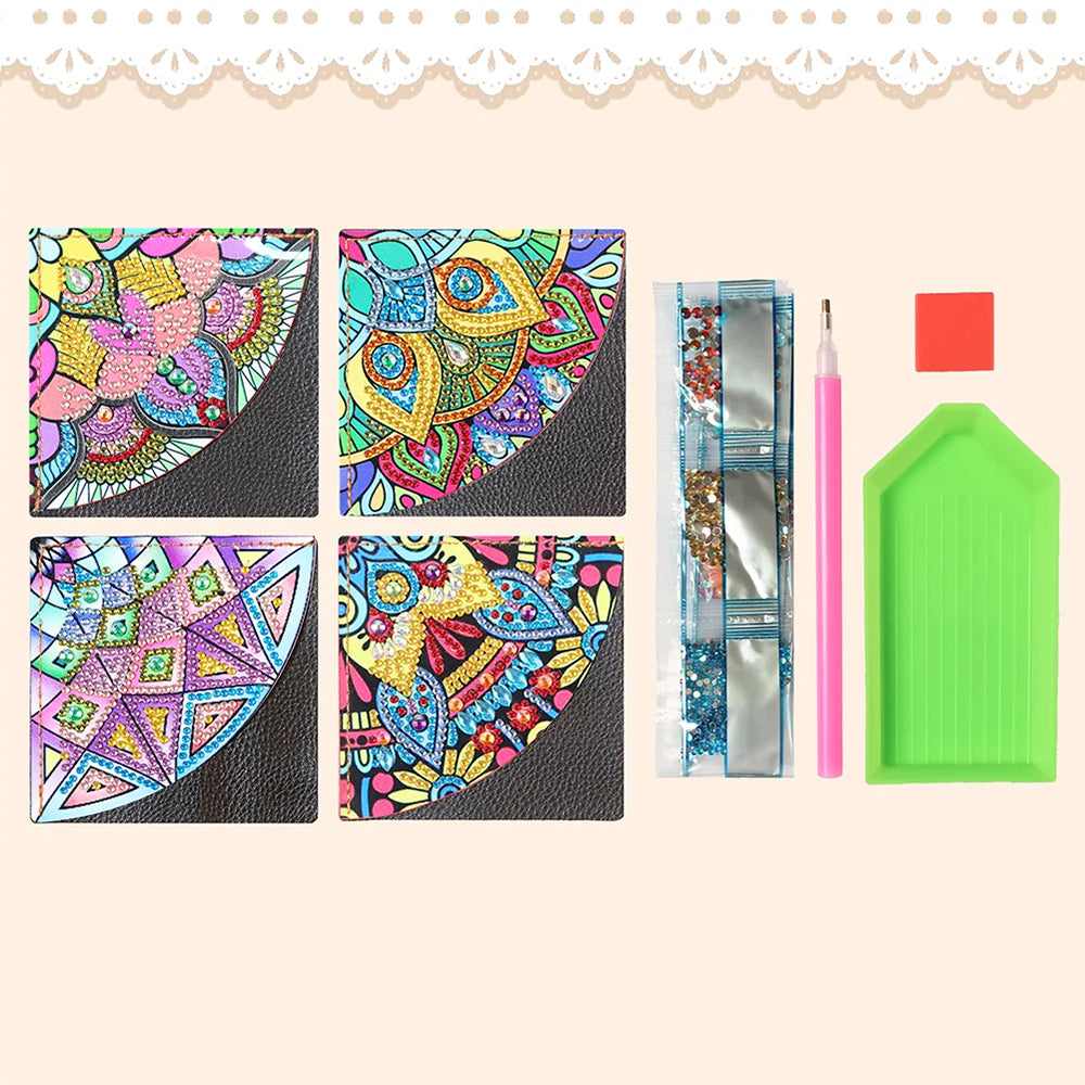 4St. Wunderschöne Mandala PU Ecke Abdeckung Lesezeichen Set Diamond Painting