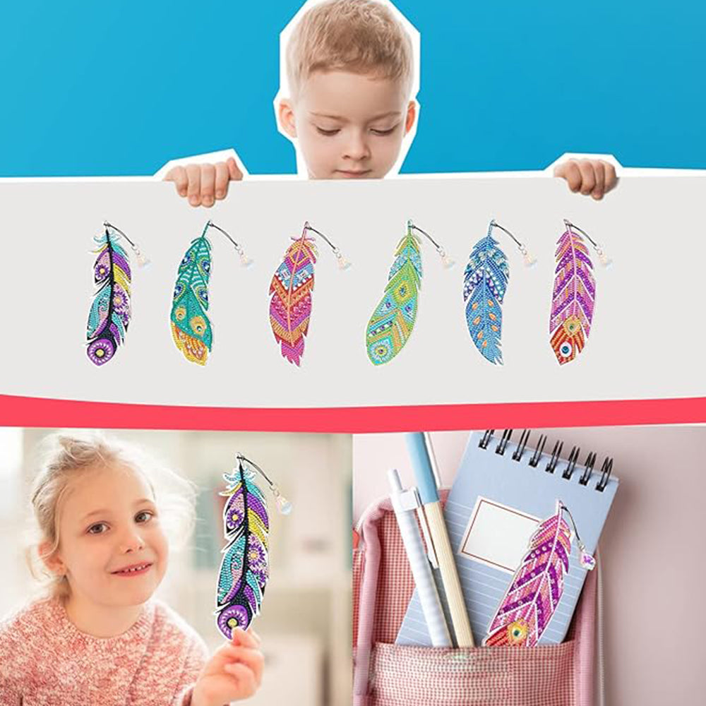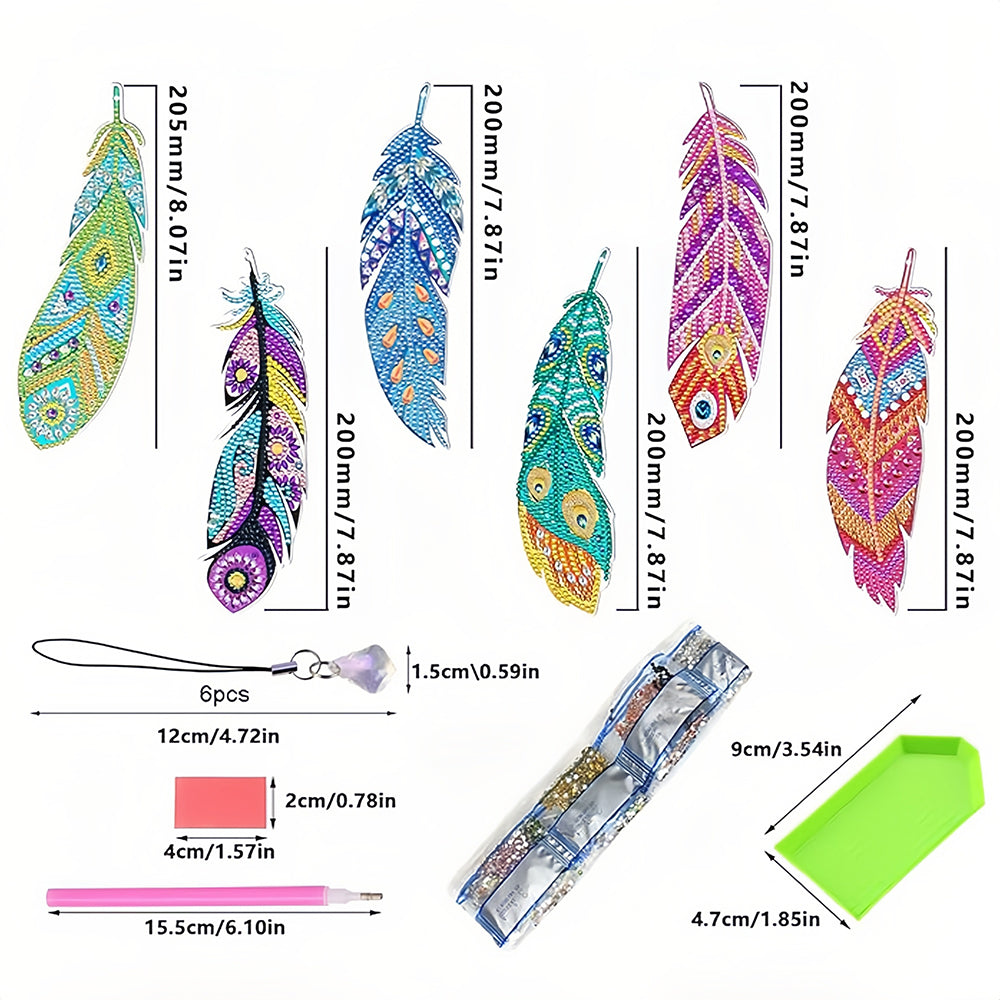 6St. Attraktive Federn Acryl Lesezeichen Set Diamond Painting