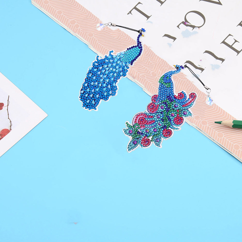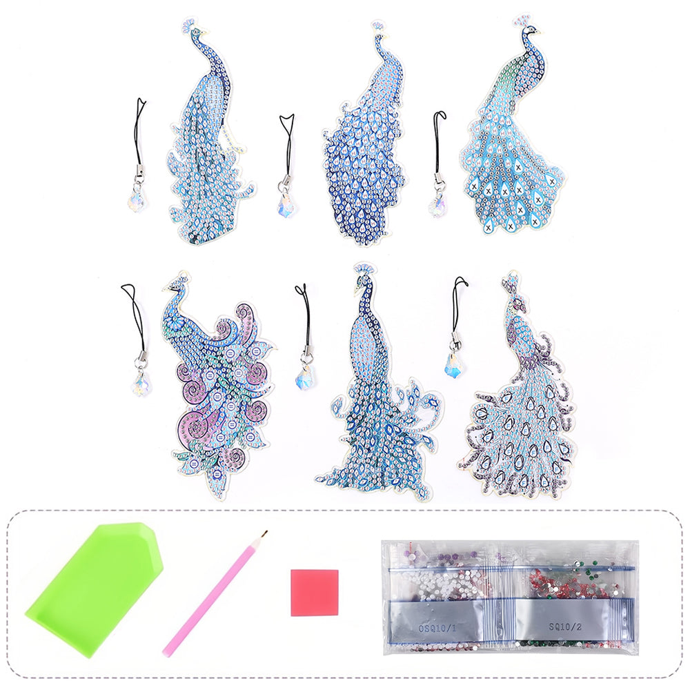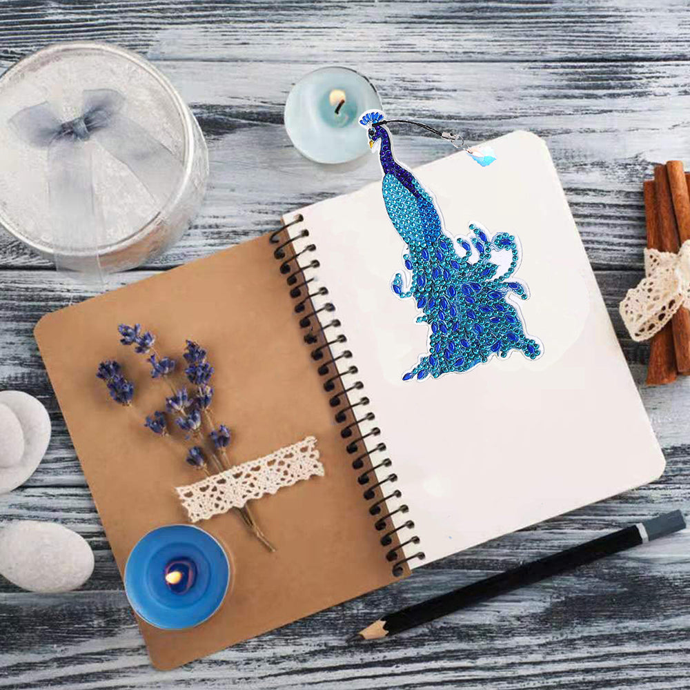 6St. Blauer Pfau Acryl Lesezeichen Set Diamond Painting