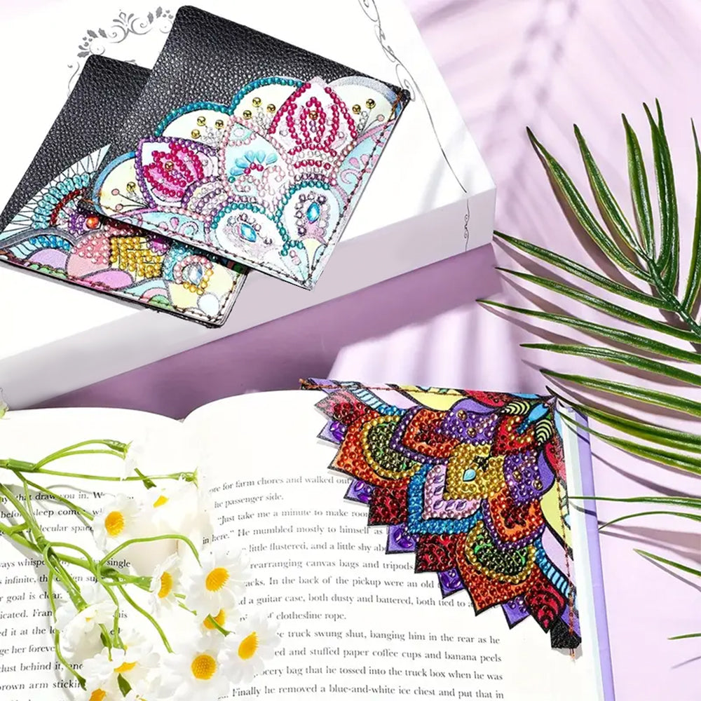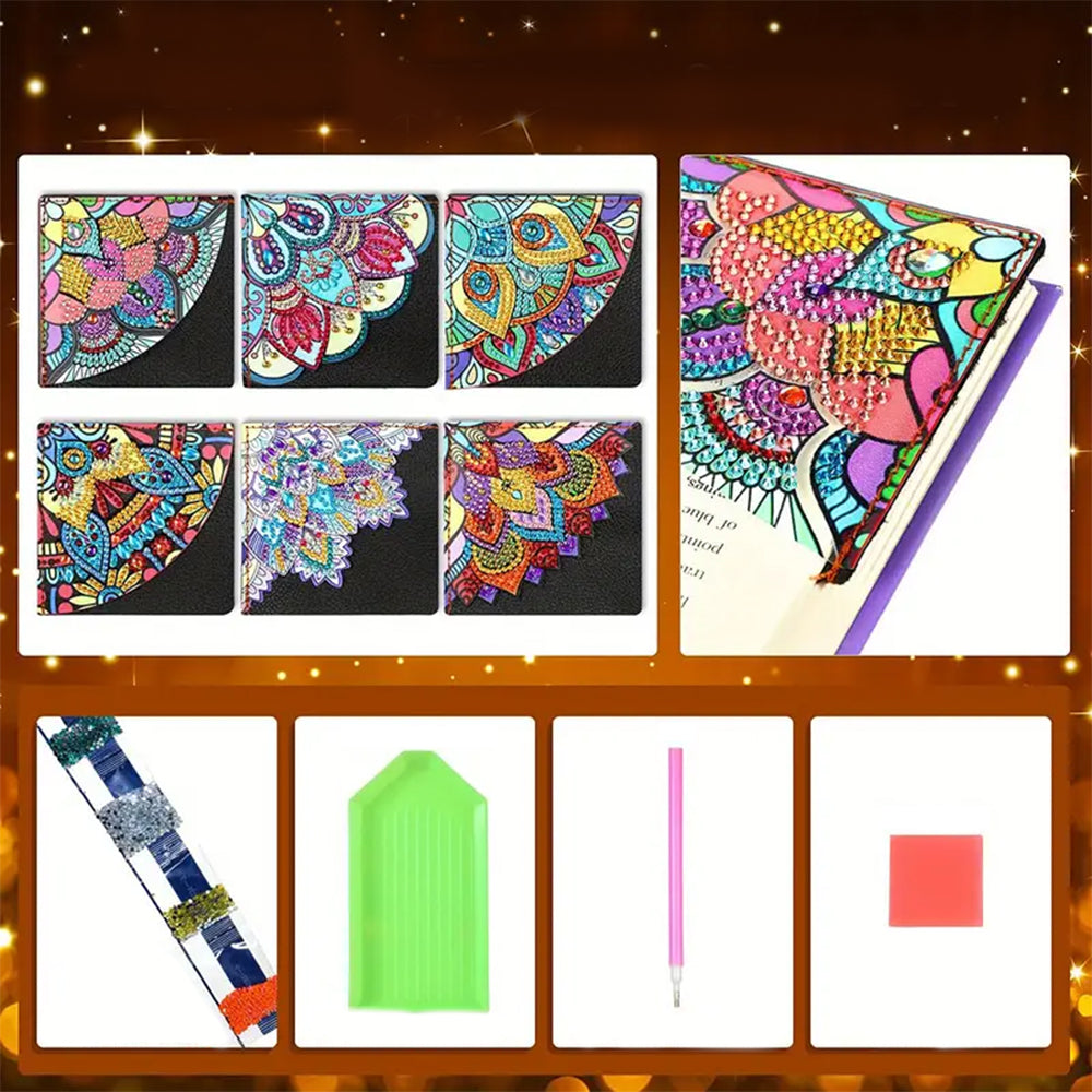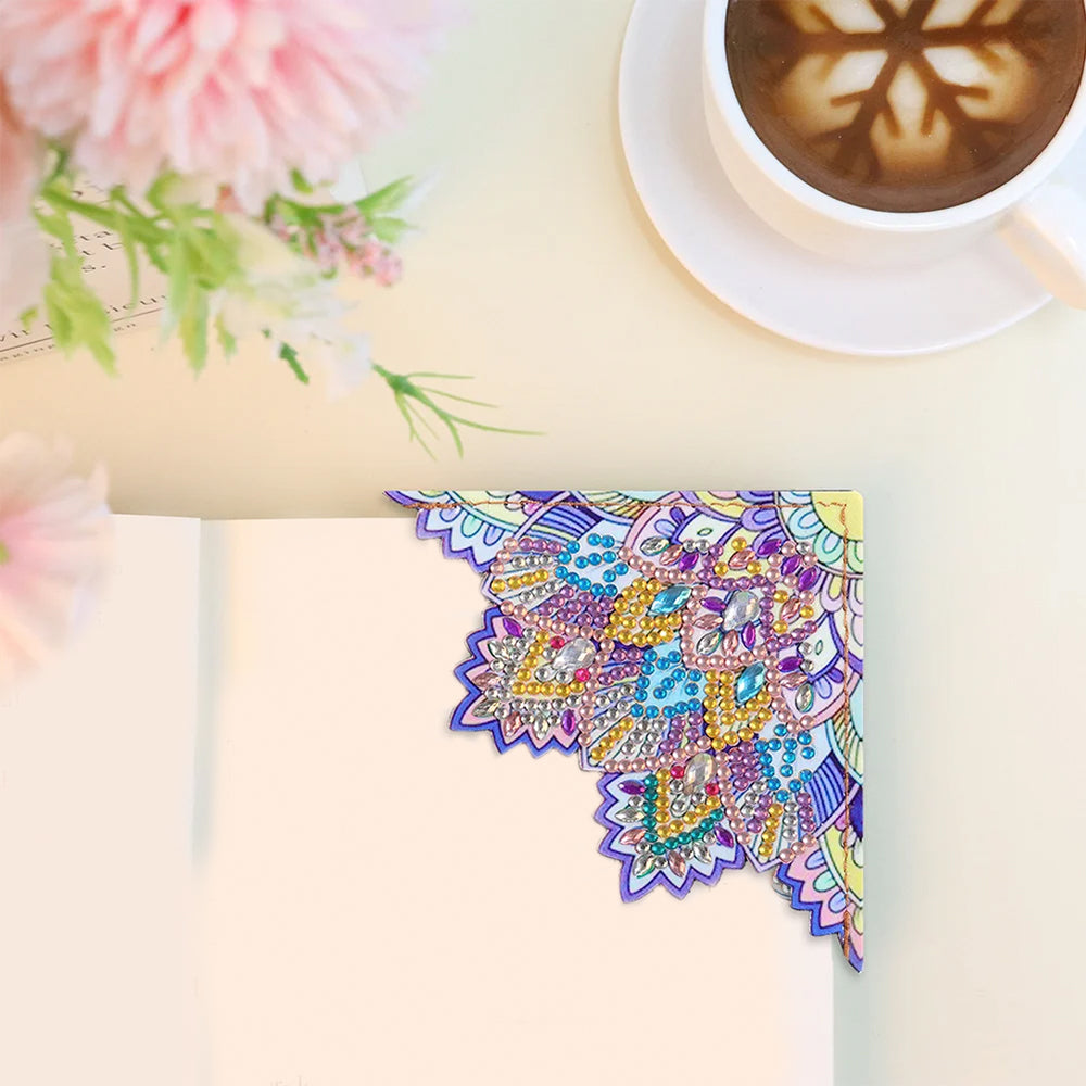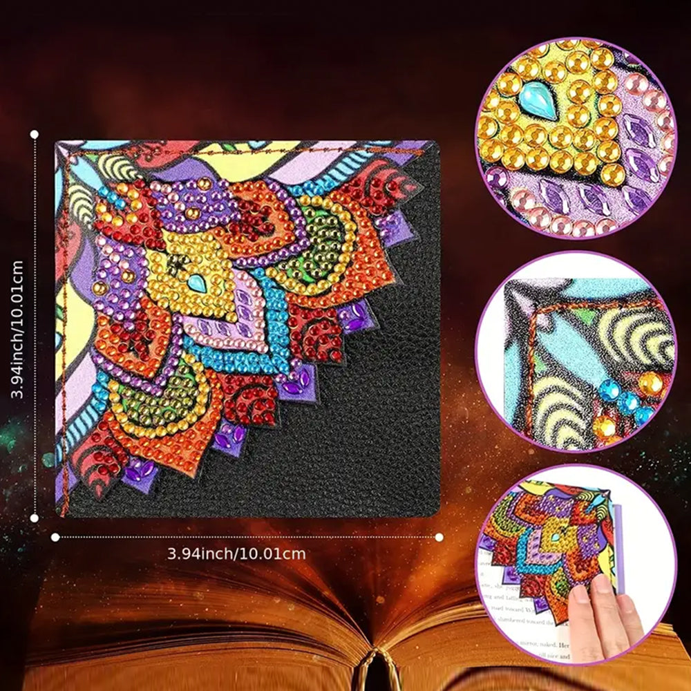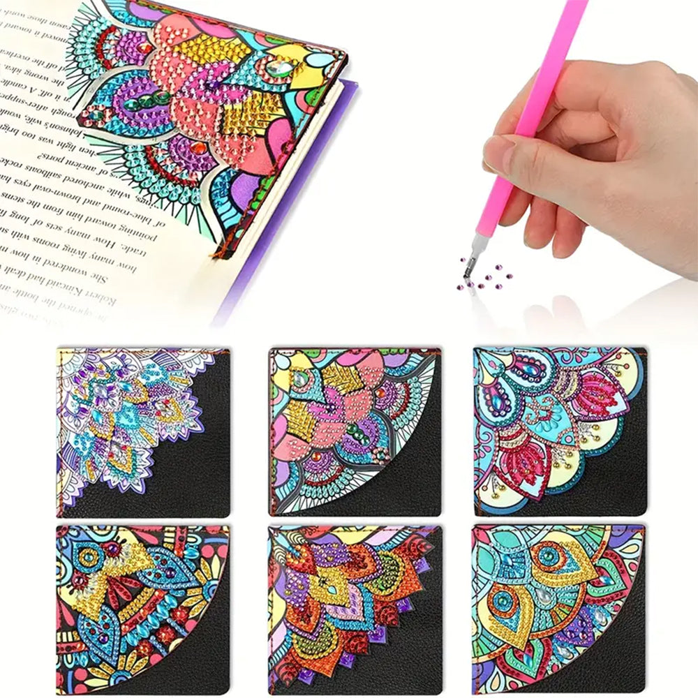 6St. Blütenblatt Geformt Mandala PU Ecke Abdeckung Lesezeichen Set Diamond Painting