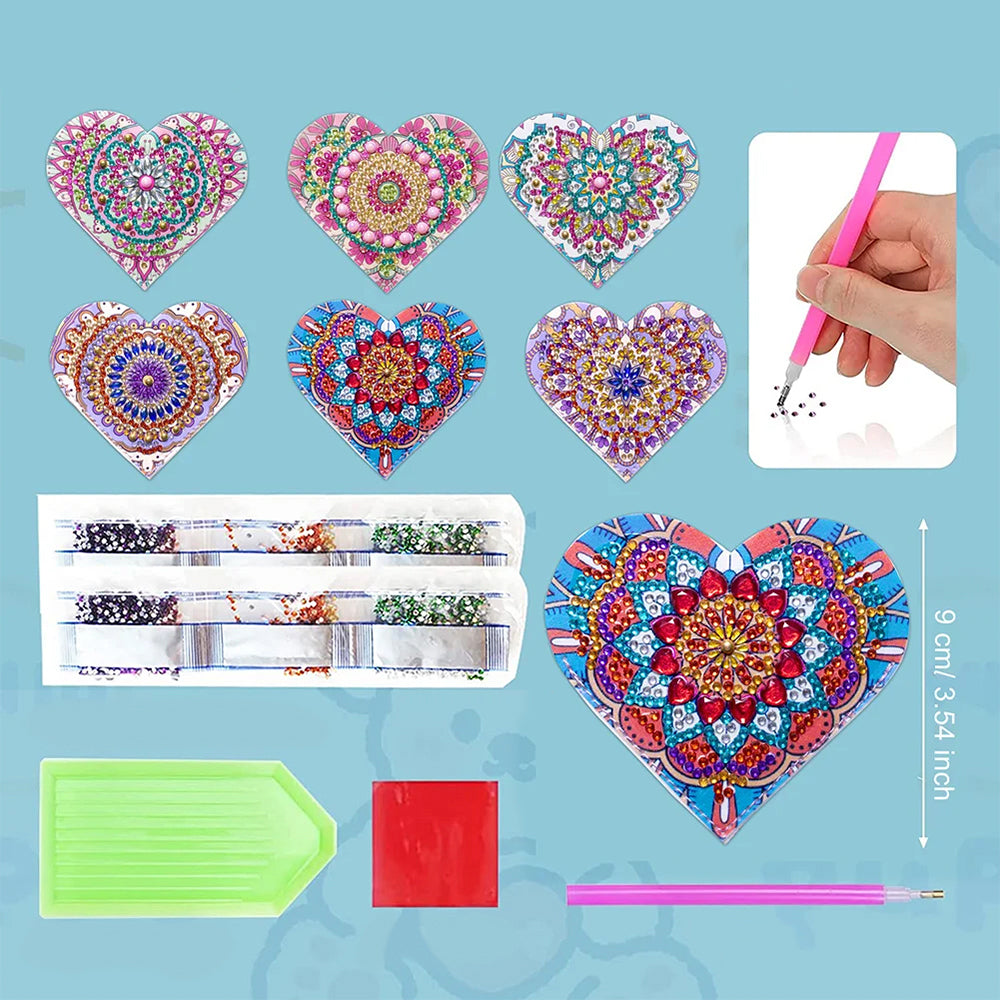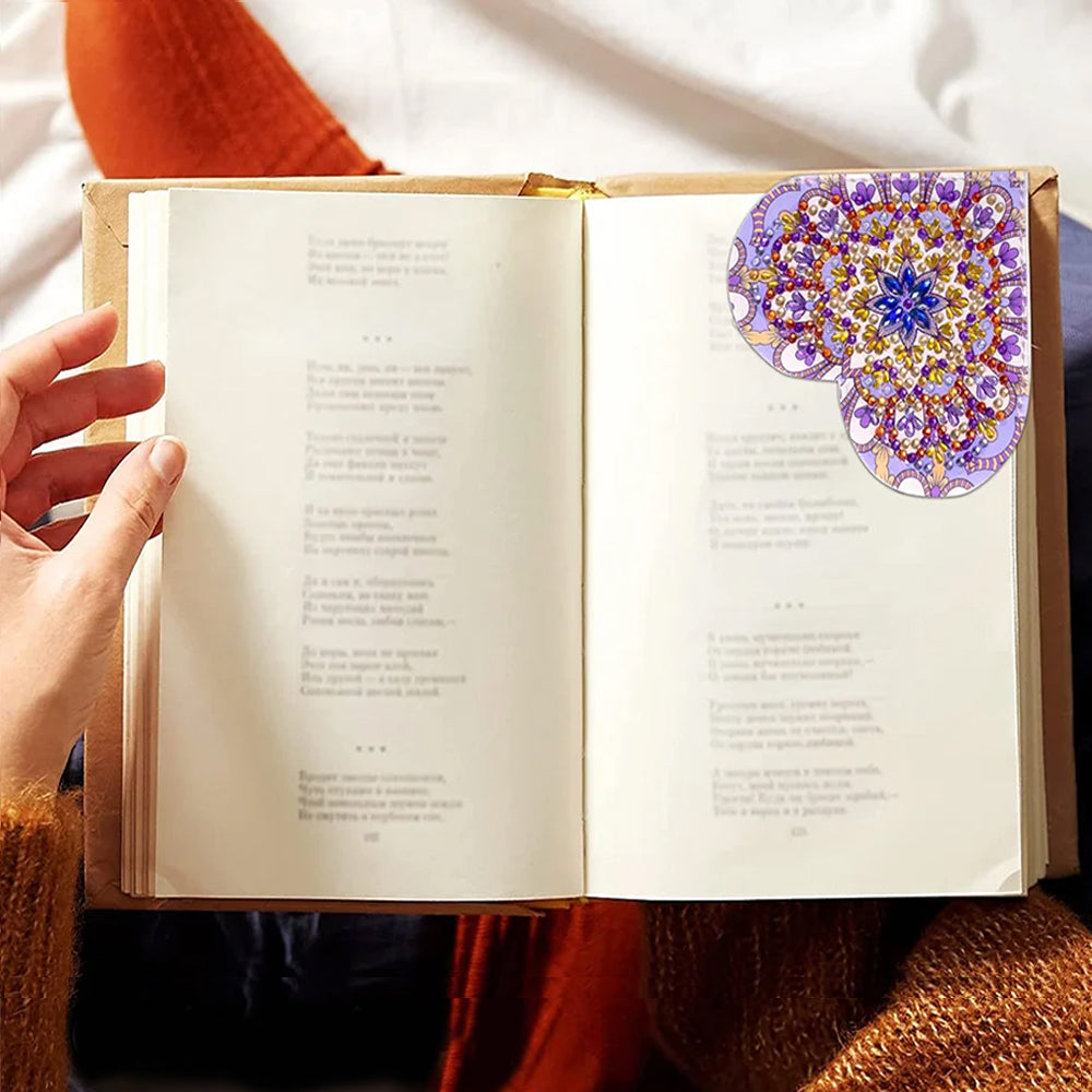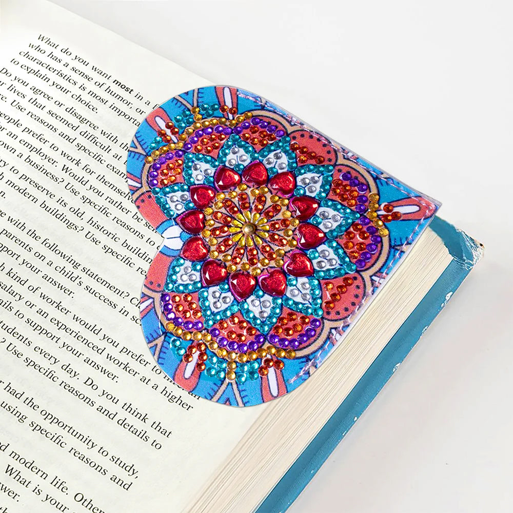 6St. Buntes Herz Geformt Mandala PU Ecke Abdeckung Lesezeichen Set Diamond Painting