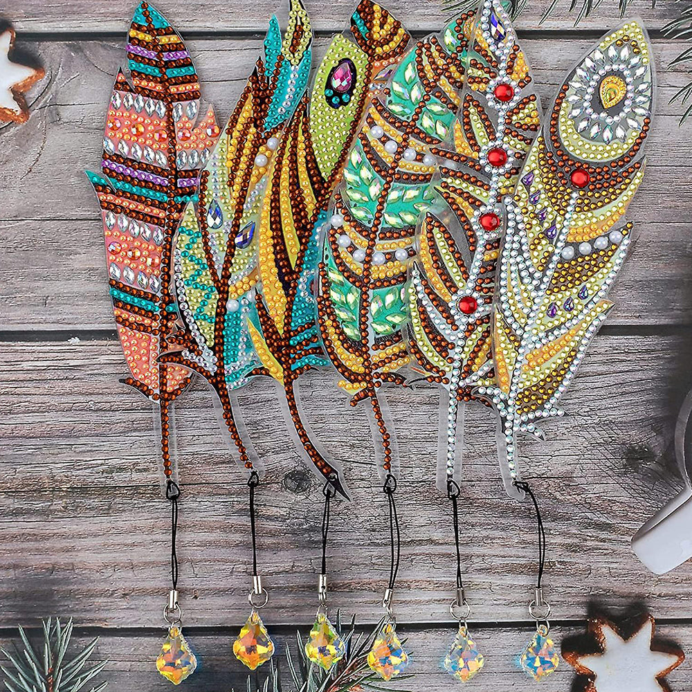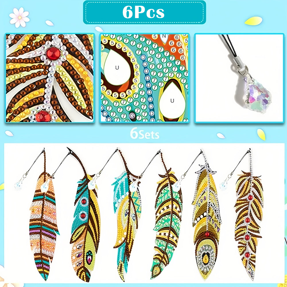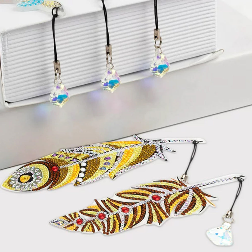 6St. Herbst Federn Acryl Lesezeichen Set Diamond Painting