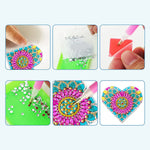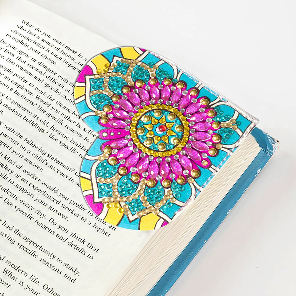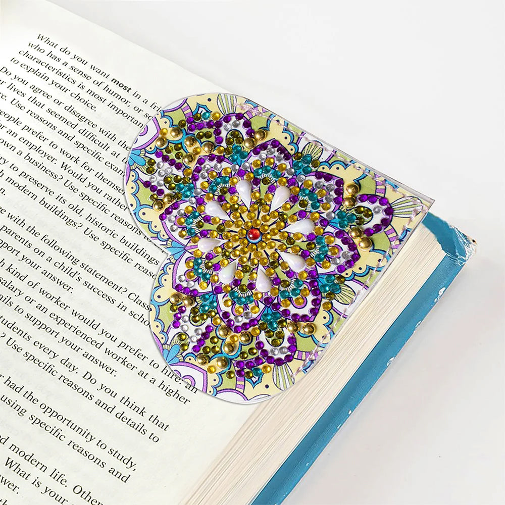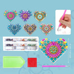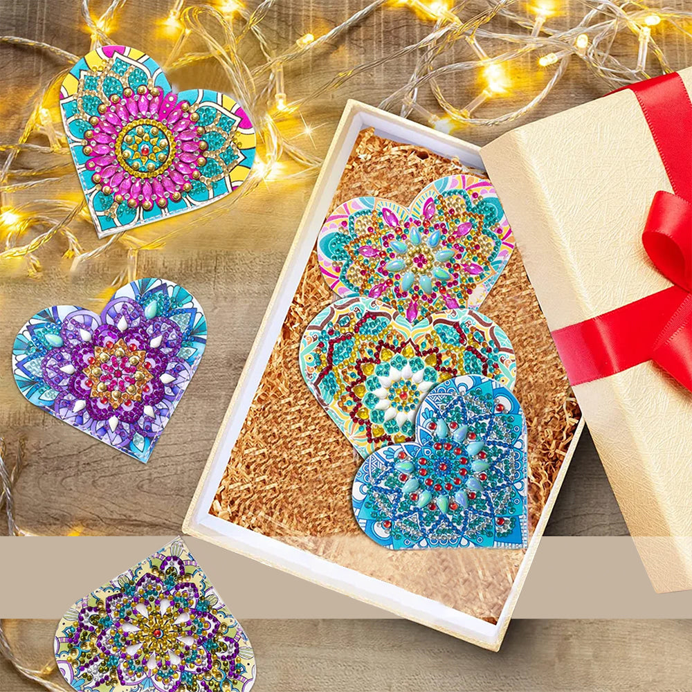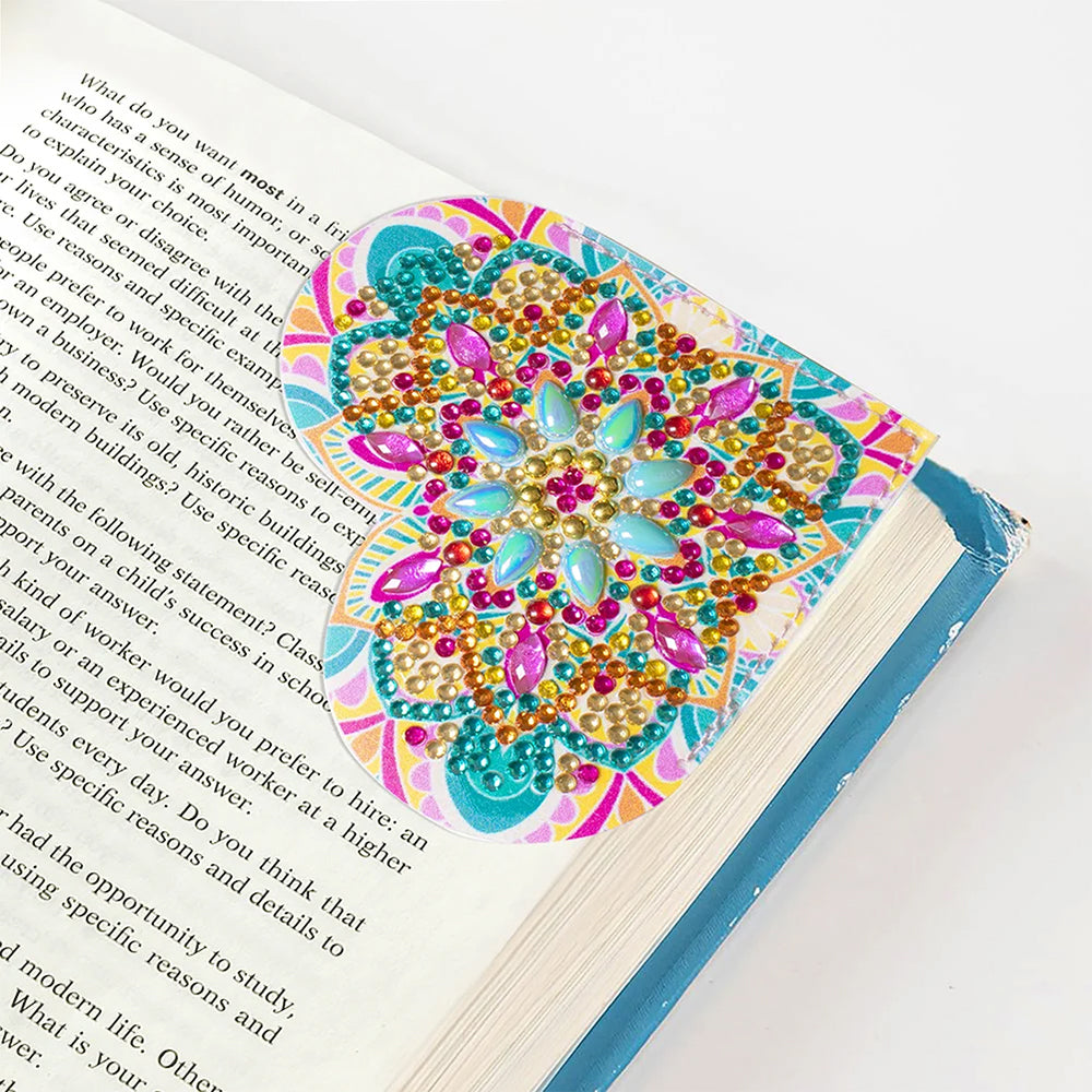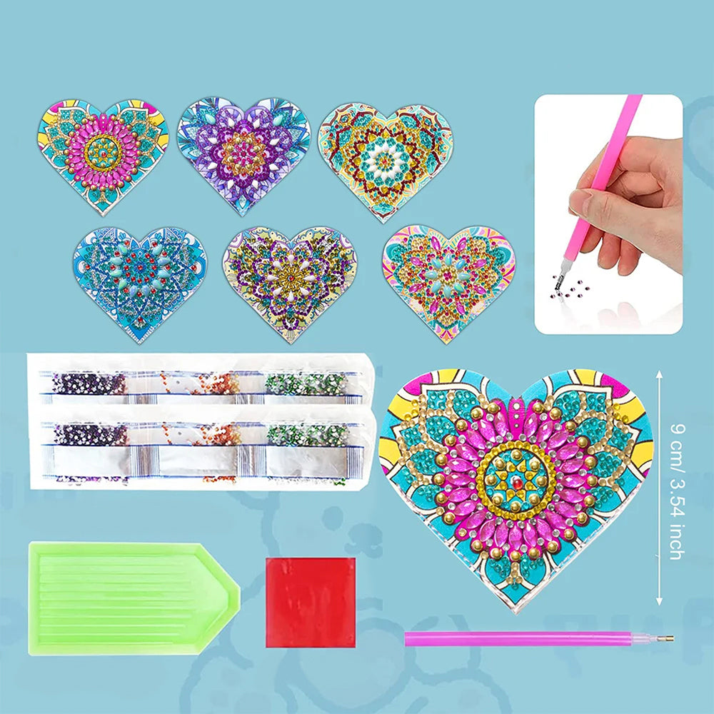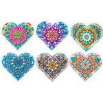 6St. Herz Geformt Mandala PU Ecke Abdeckung Lesezeichen Set Diamond Painting