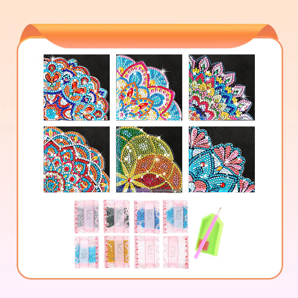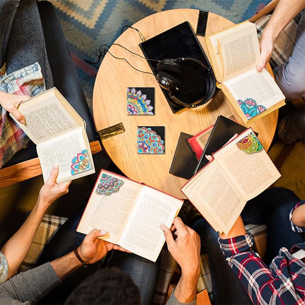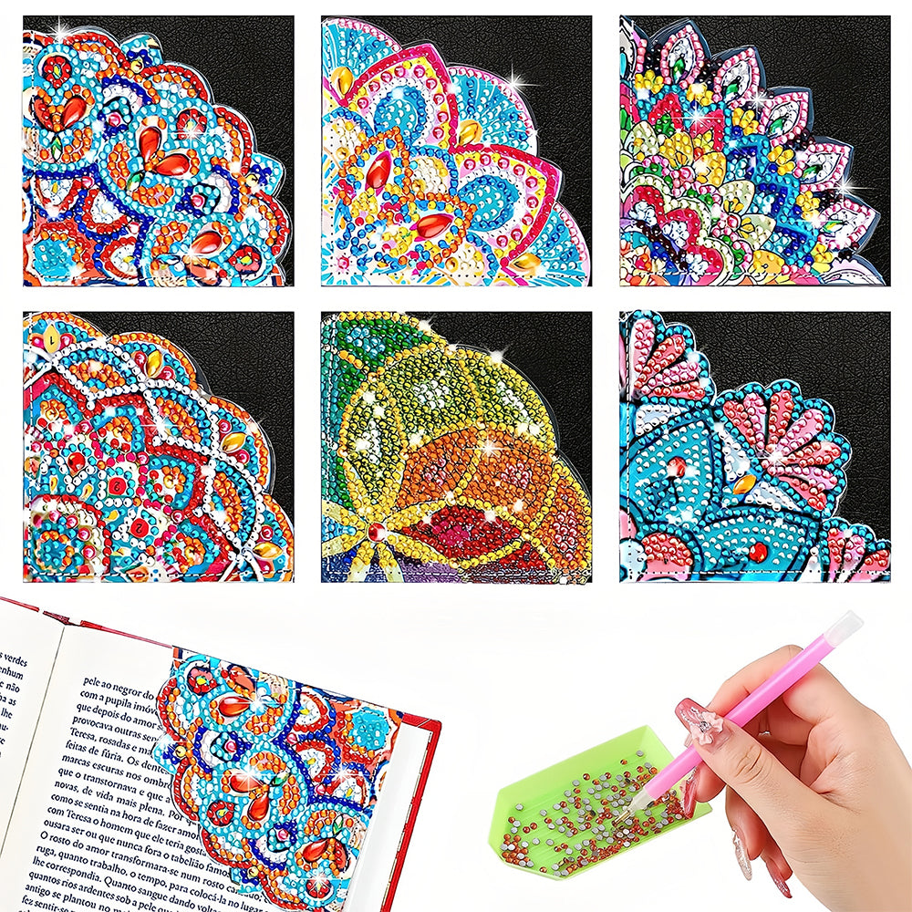 6St. Komplexes Mandala PU Ecke Abdeckung Lesezeichen Set Diamond Painting