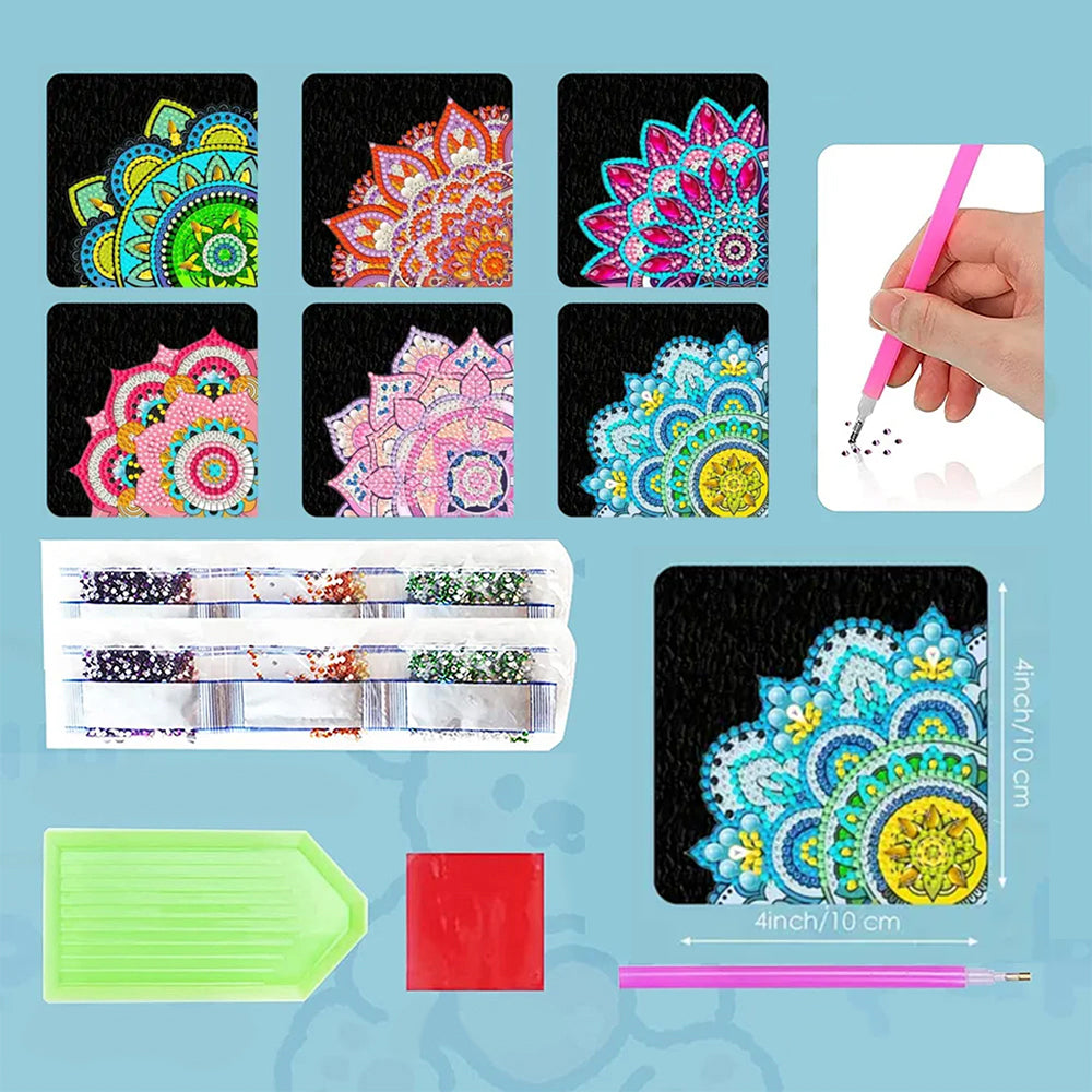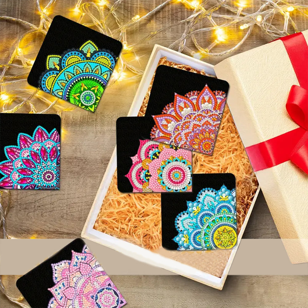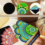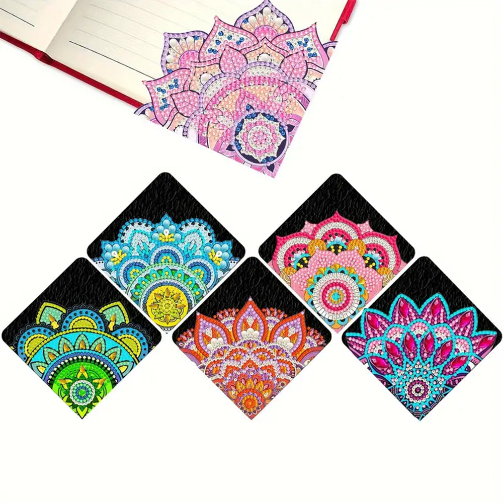 6St. Lotus Mandala PU Ecke Abdeckung Lesezeichen Set Diamond Painting