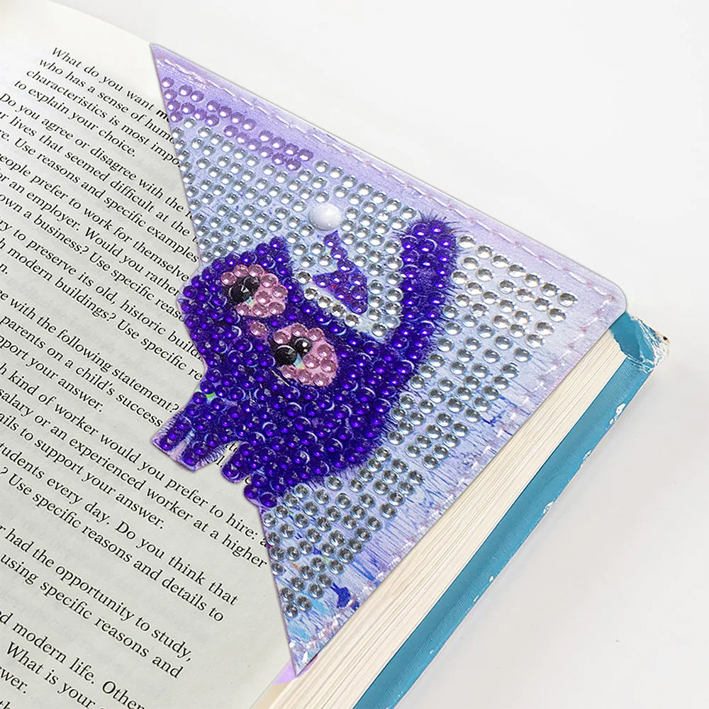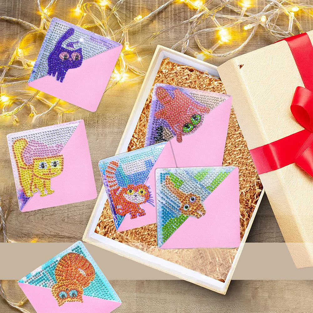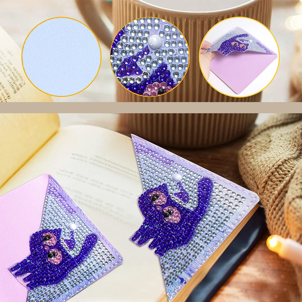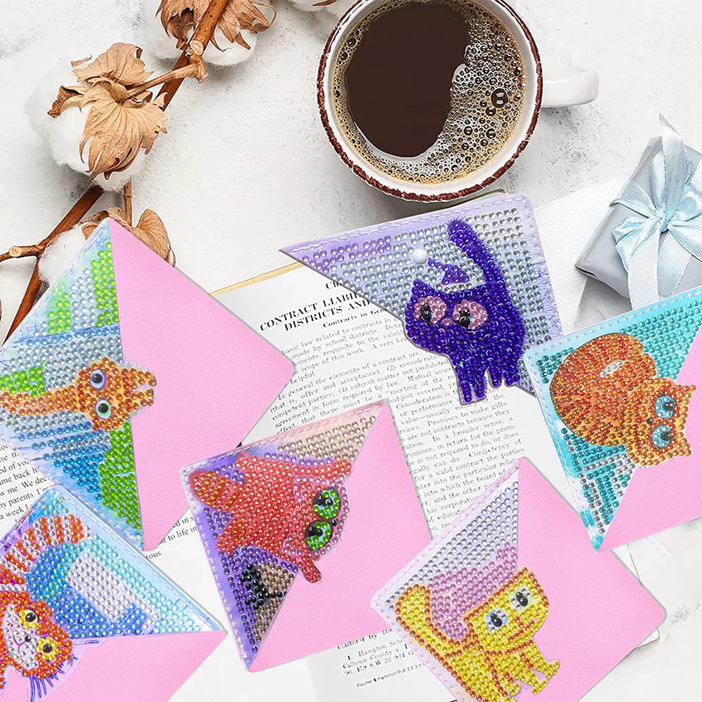 6St. Lustige Katzen PU Ecke Abdeckung Lesezeichen Set Diamond Painting
