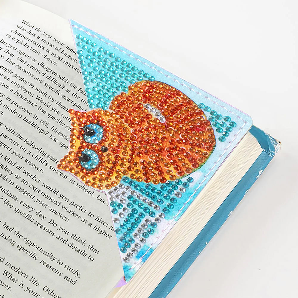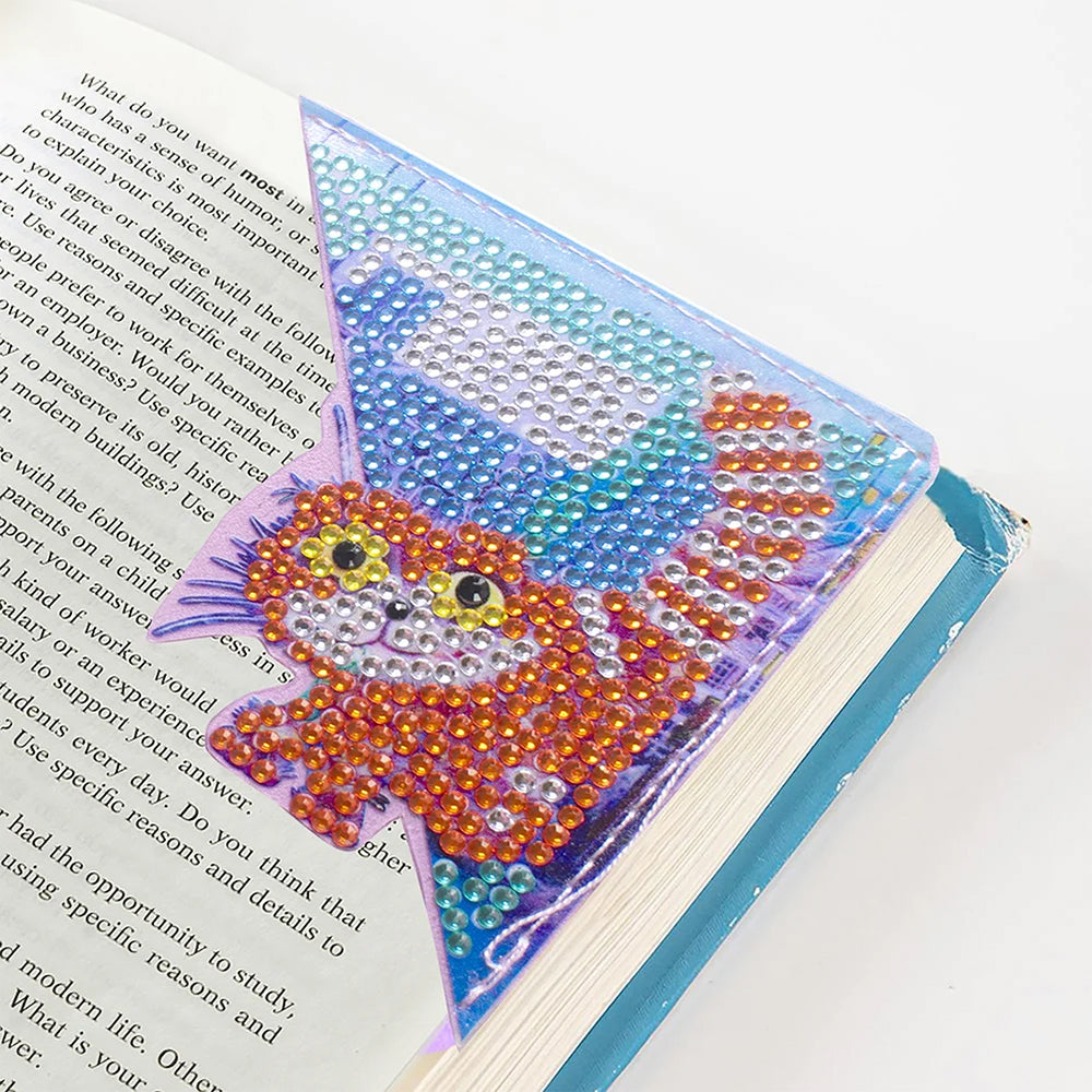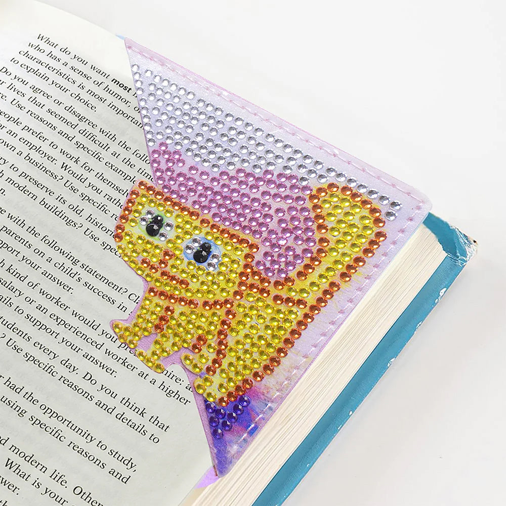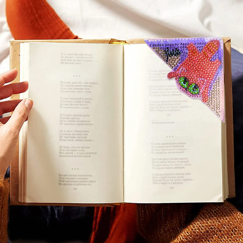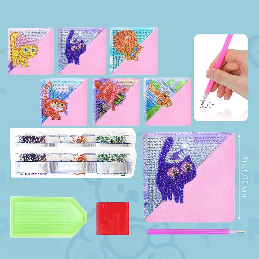 6St. Lustige Katzen PU Ecke Abdeckung Lesezeichen Set Diamond Painting