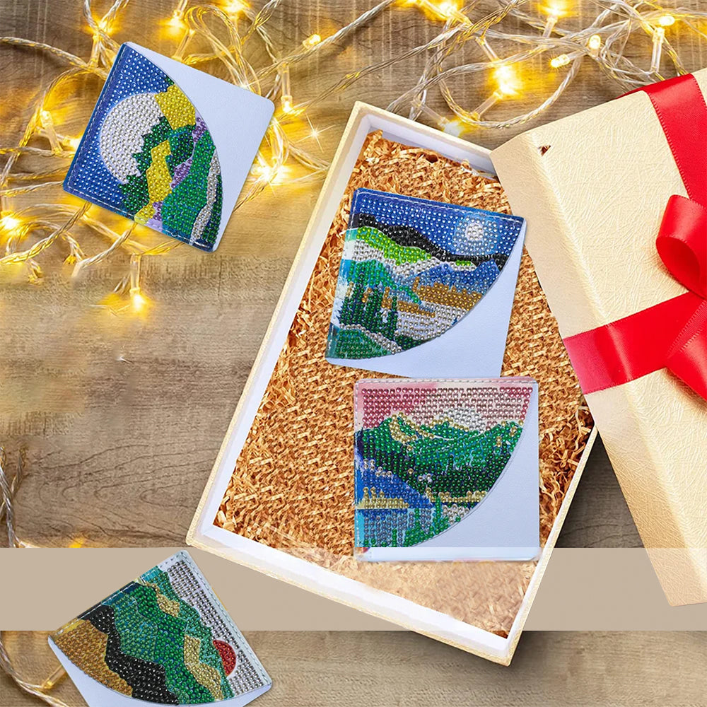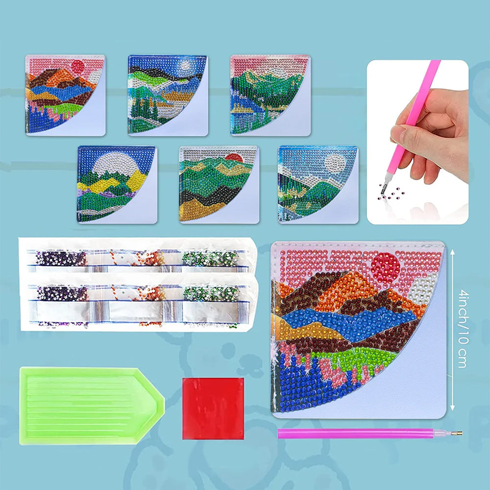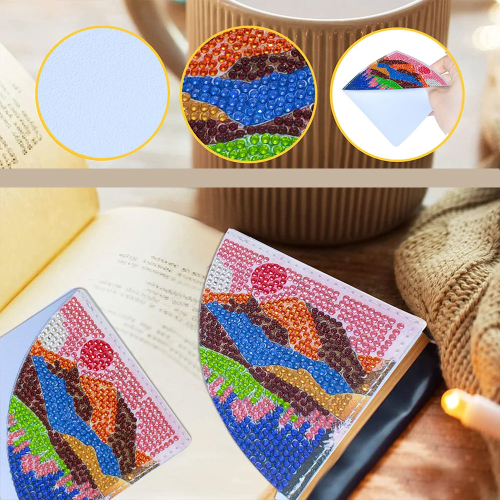 6St. Sommer Landschaft PU Ecke Abdeckung Lesezeichen Set Diamond Painting