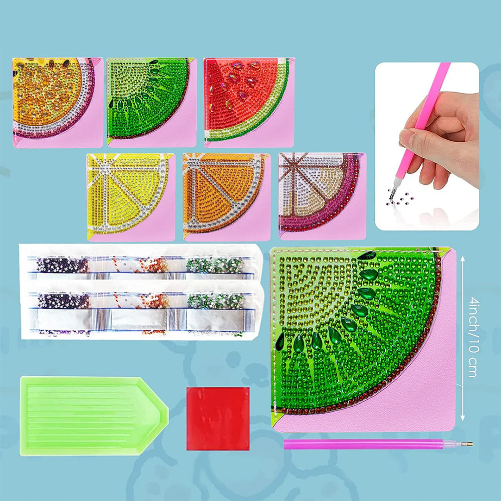 6St. Sommerfrüchte PU Ecke Abdeckung Lesezeichen Set Diamond Painting