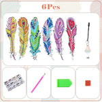 6St. Wunderbar Farbige Federn Acryl Lesezeichen Set Diamond Painting