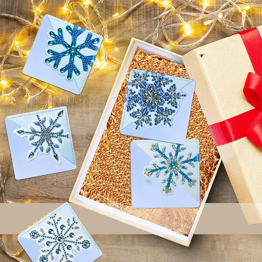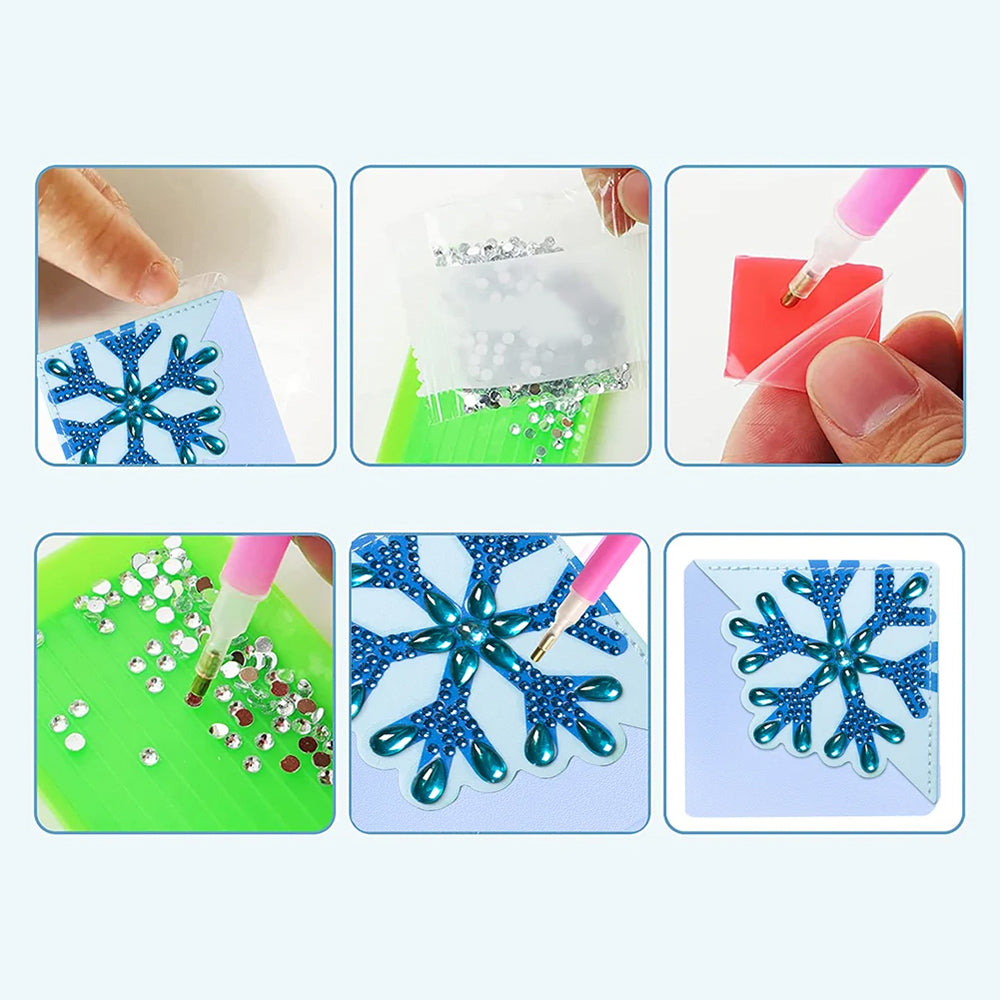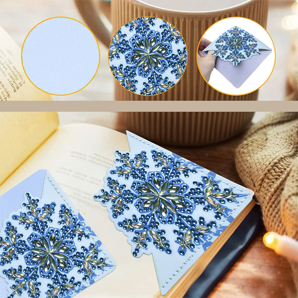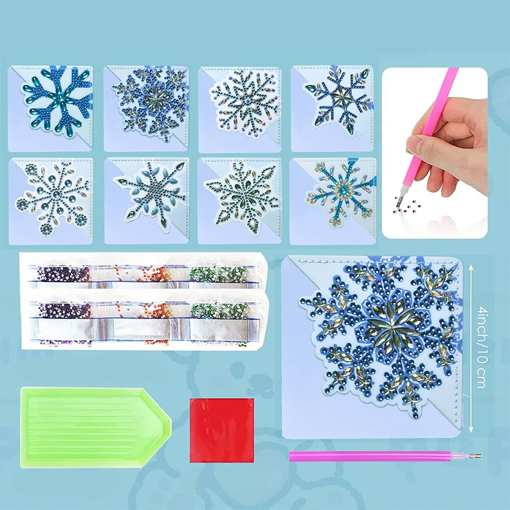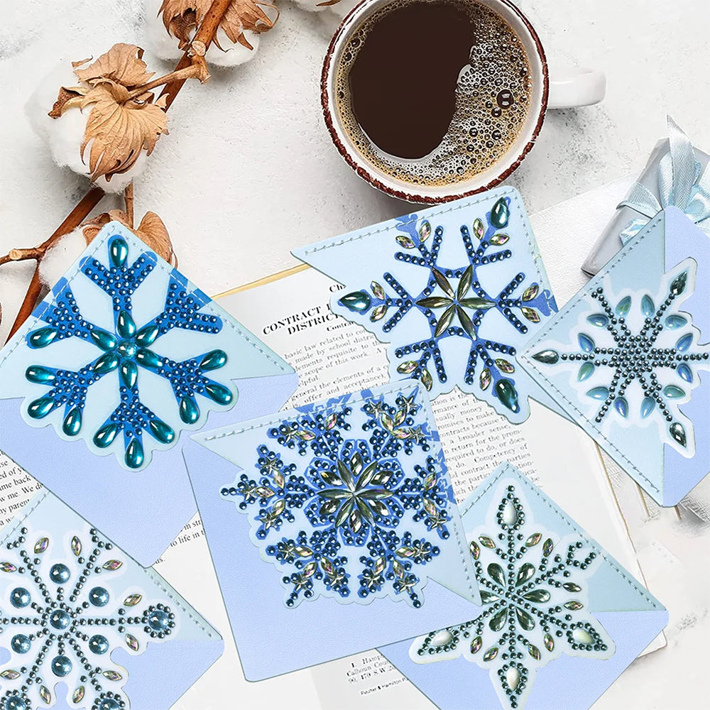 8St. Blau Schneeflocke PU Ecke Abdeckung Lesezeichen Set Diamond Painting