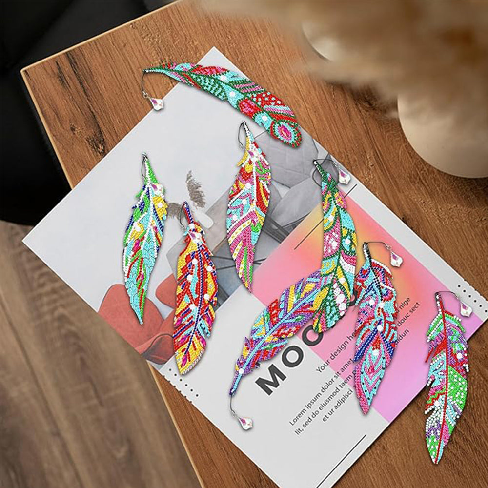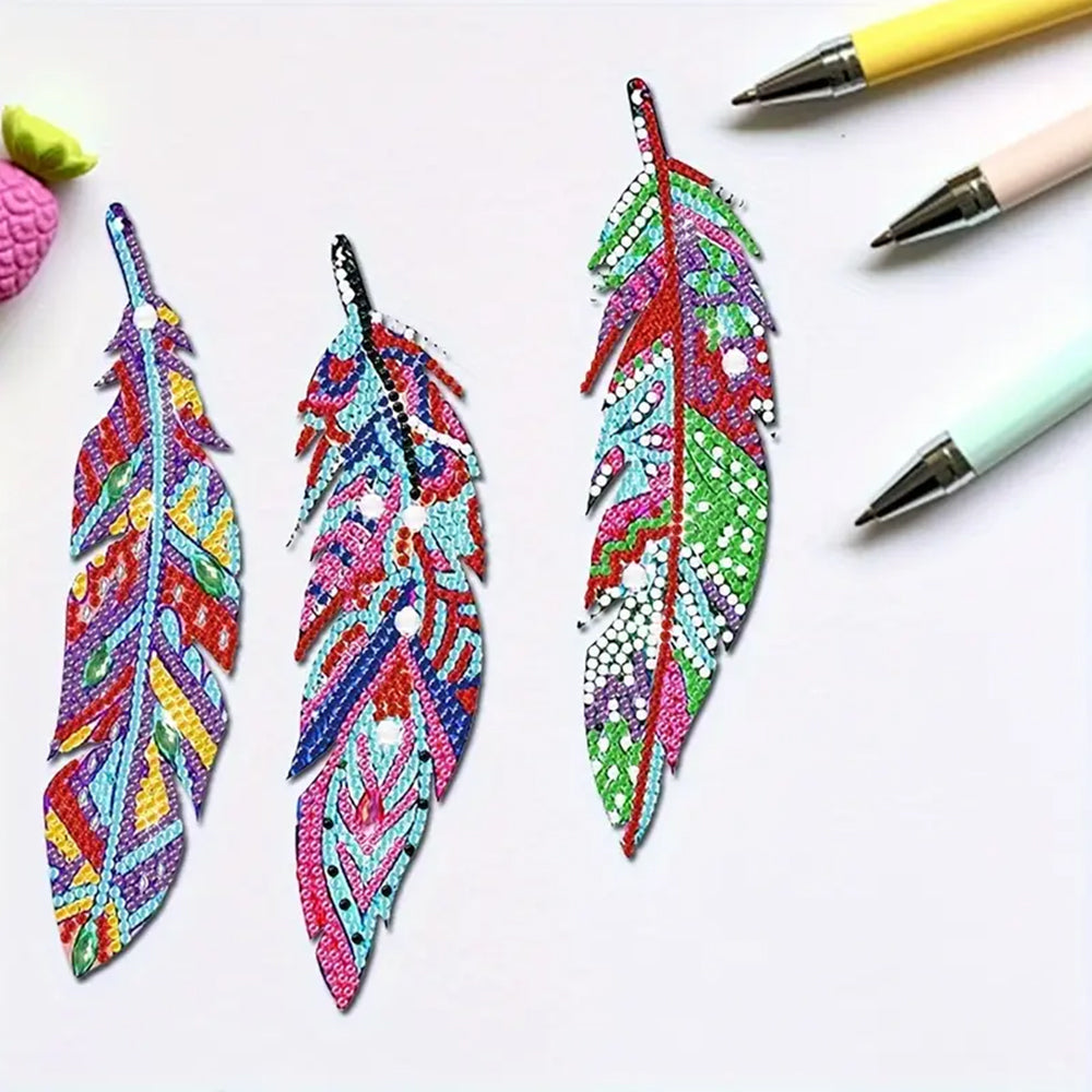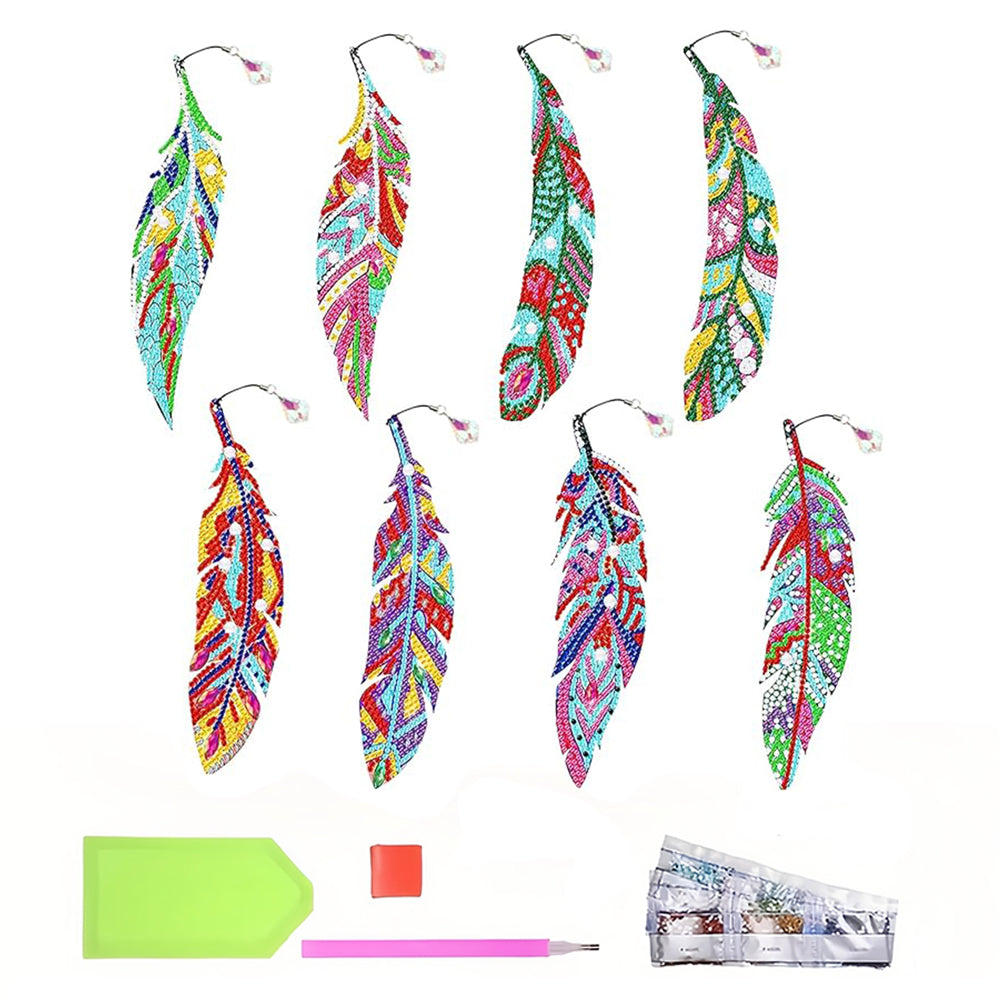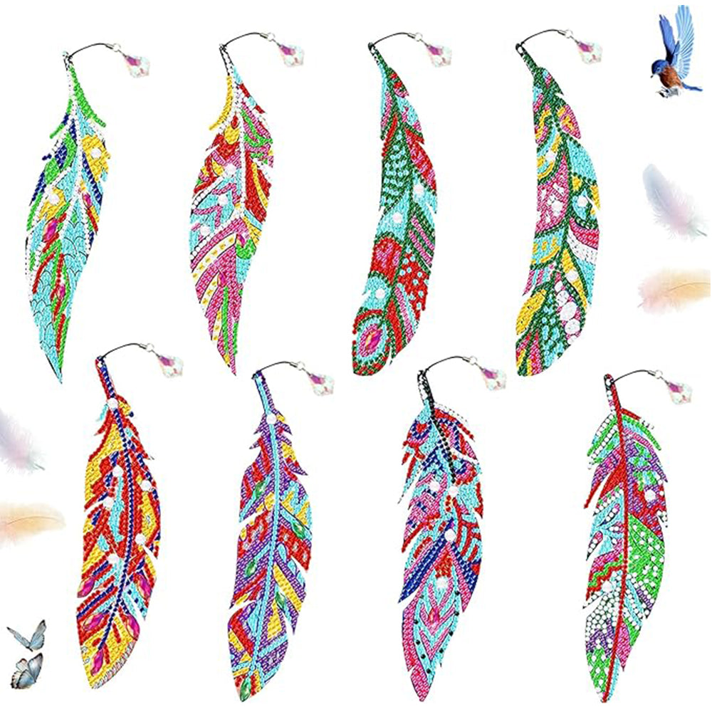 8St. Bunte Federn Acryl Lesezeichen Set Diamond Painting