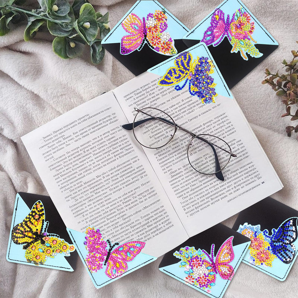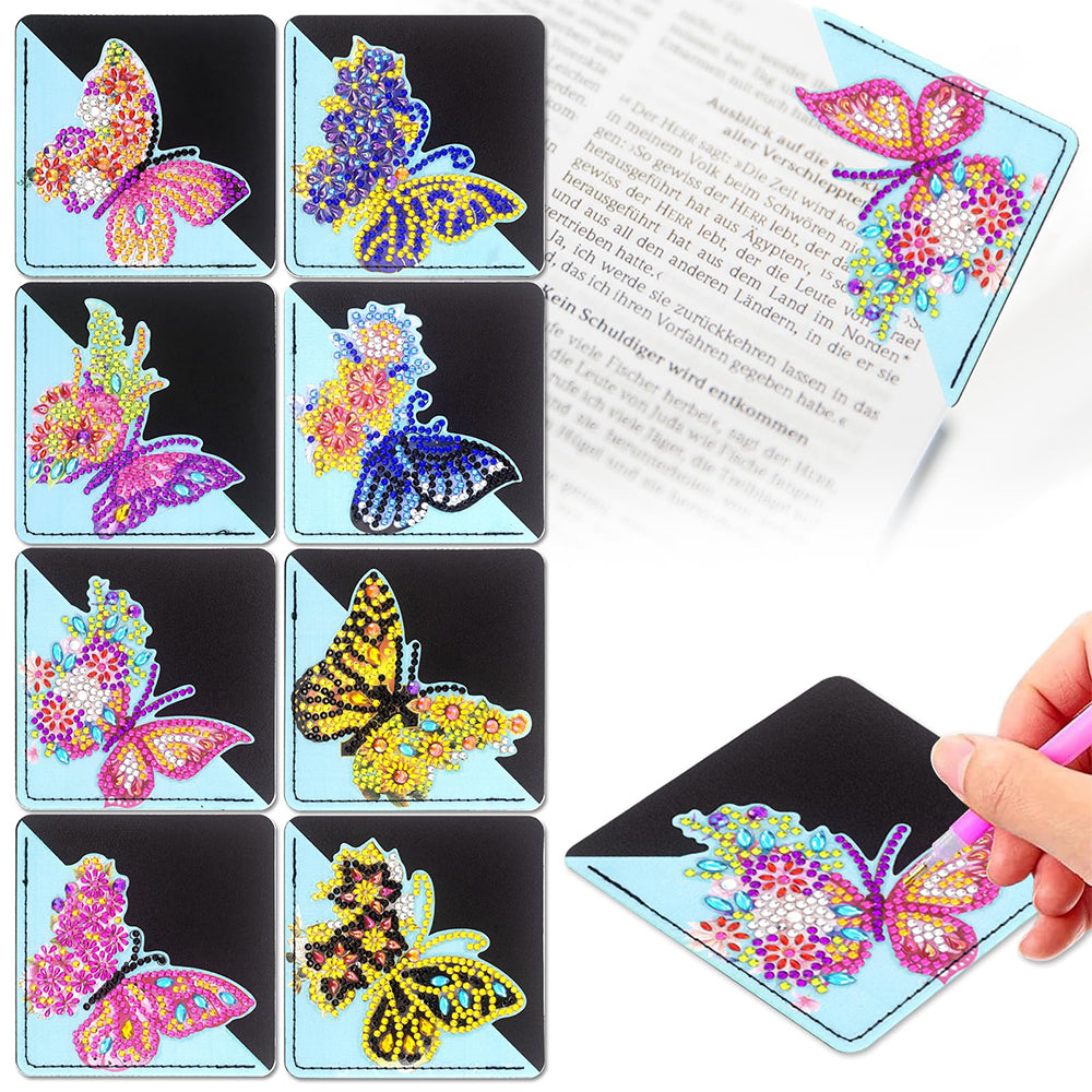 8St. Bunter Schmetterling PU Ecke Abdeckung Lesezeichen Set Diamond Painting