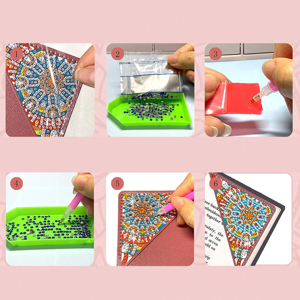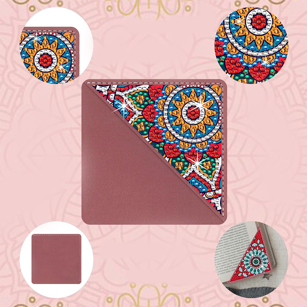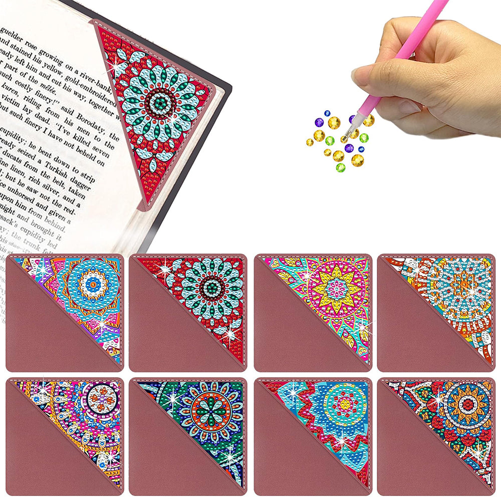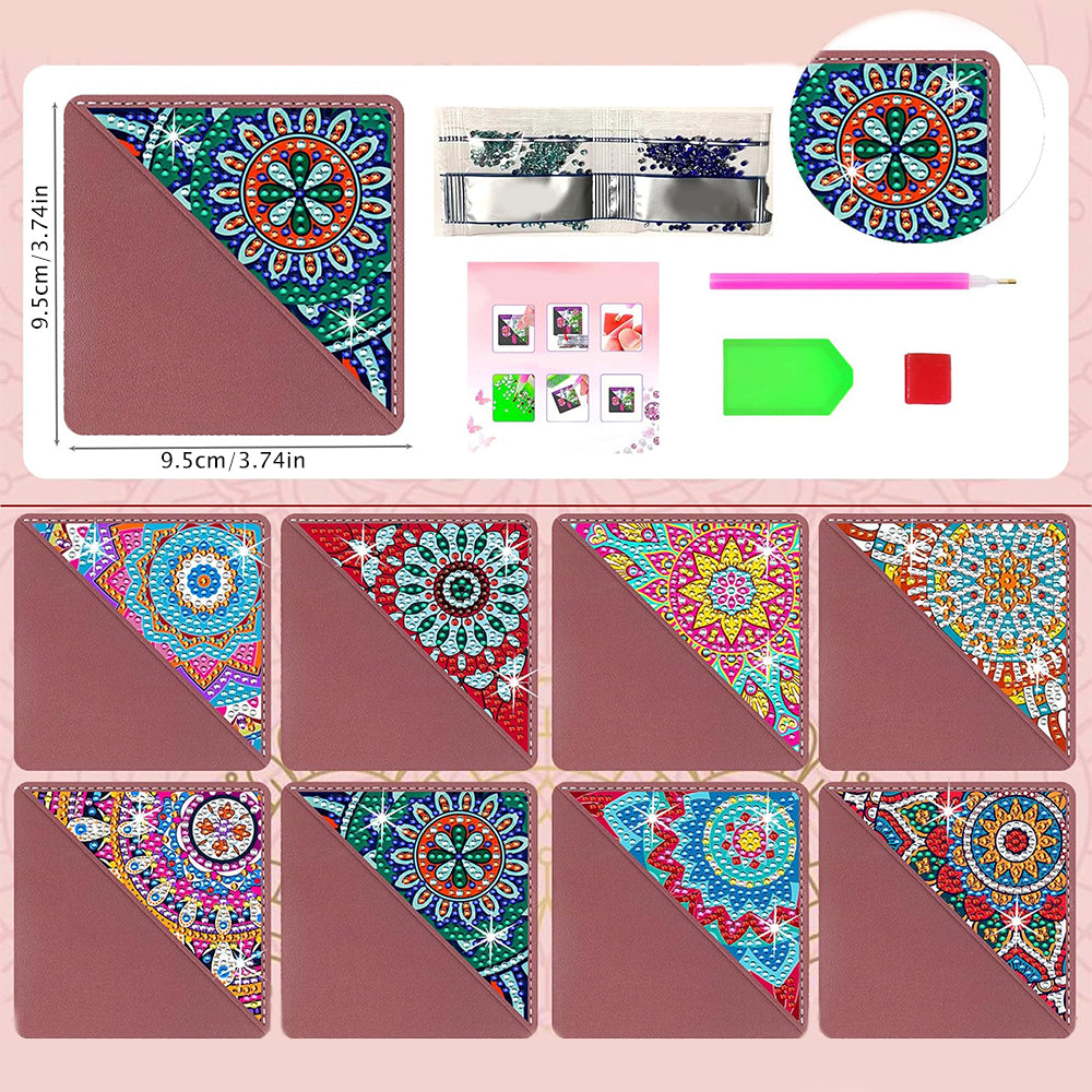 8St. Dreieck Mandala PU Ecke Abdeckung Lesezeichen Set Diamond Painting