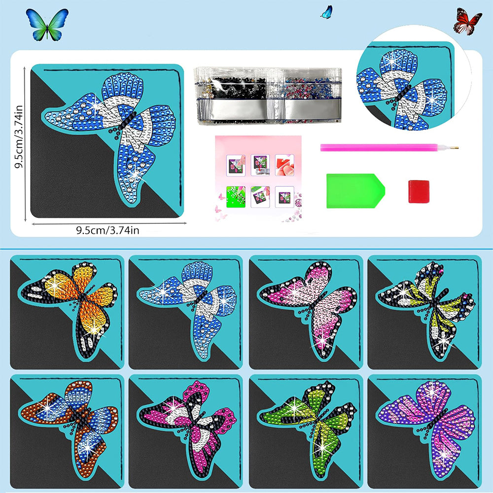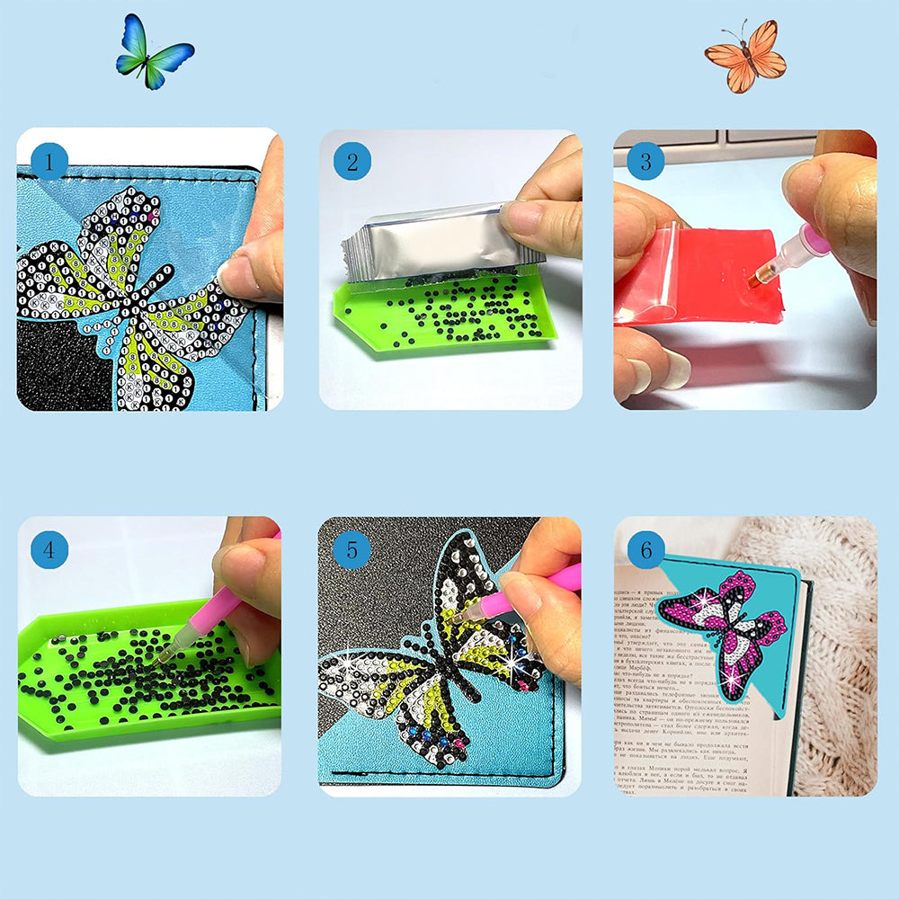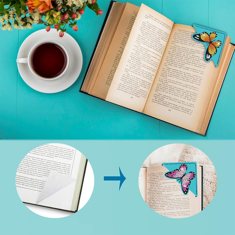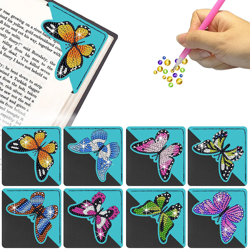 8St. Fliegender Schmetterling PU Ecke Abdeckung Lesezeichen Set Diamond Painting