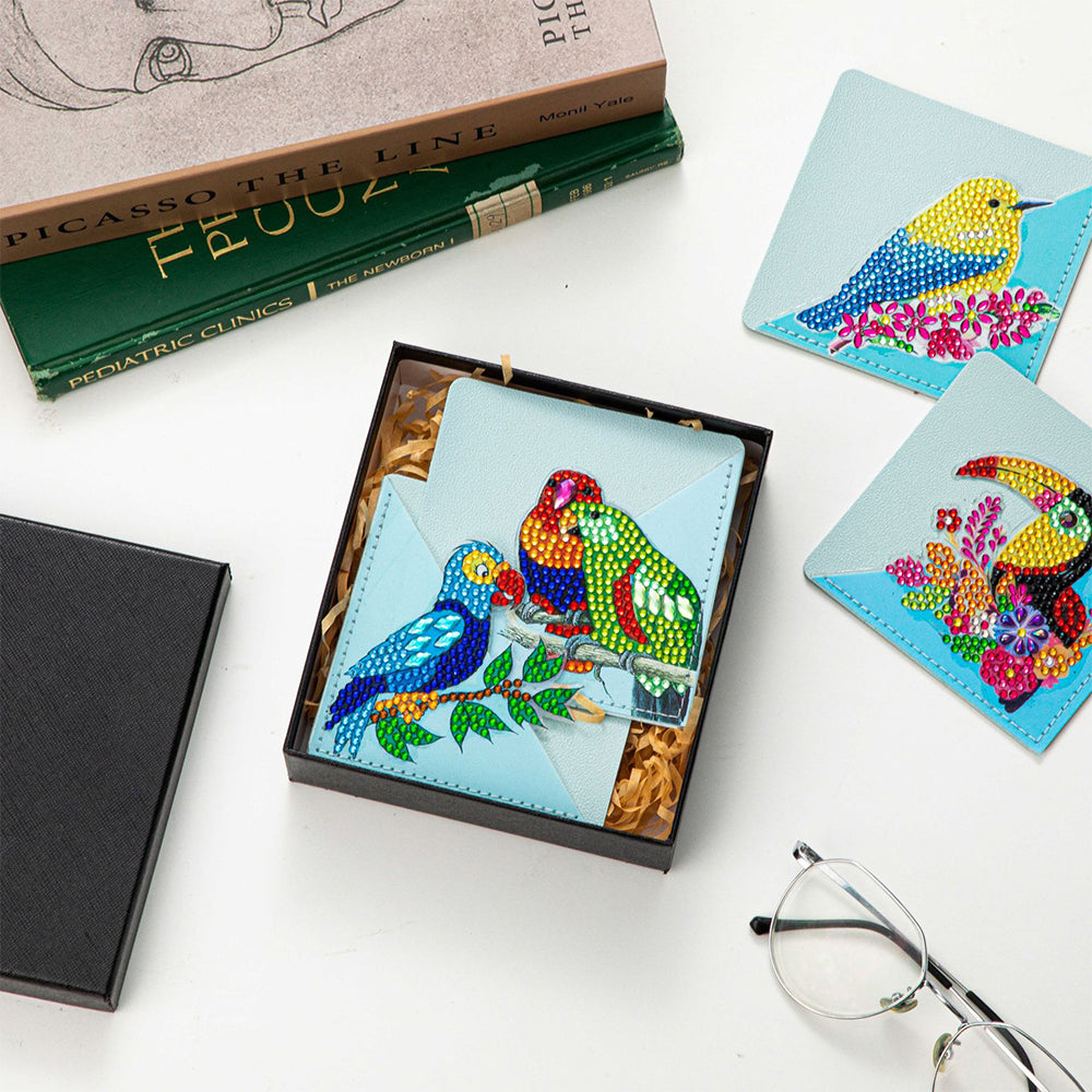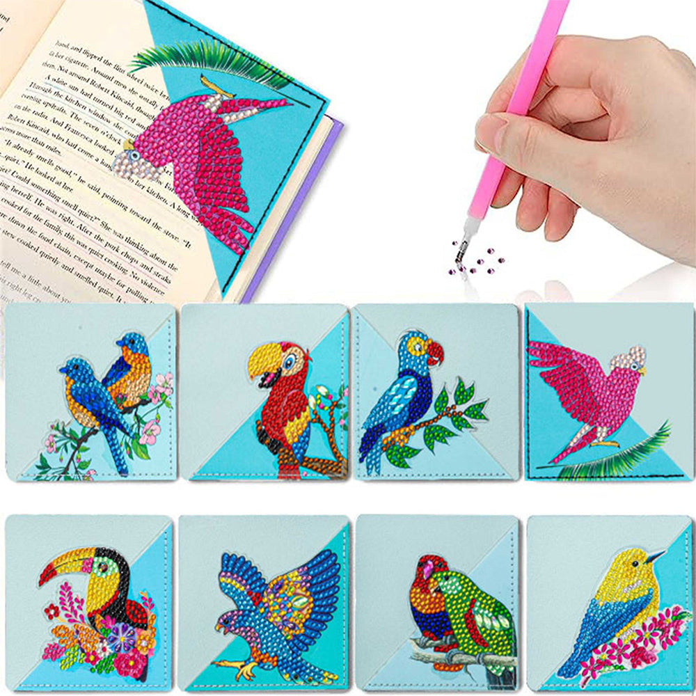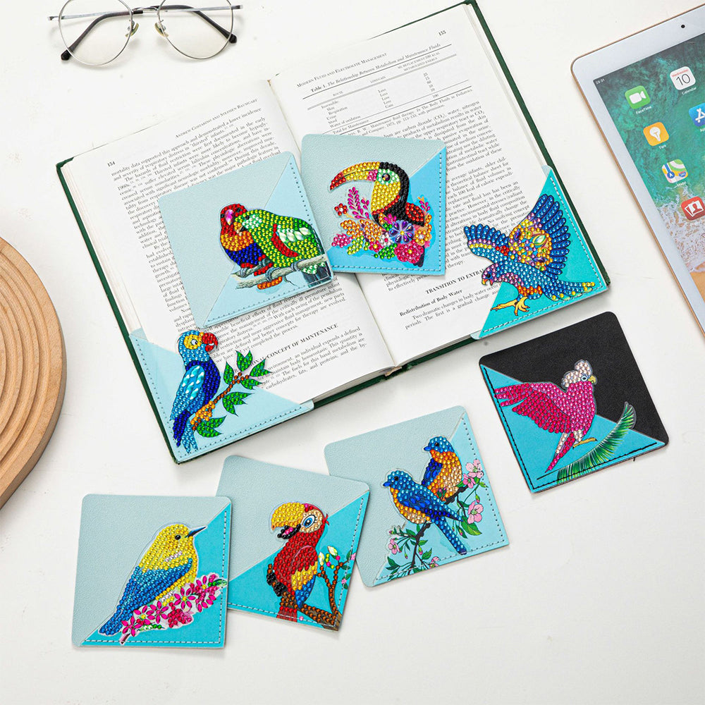 8St. Papagei und Vogel PU Ecke Abdeckung Lesezeichen Set Diamond Painting