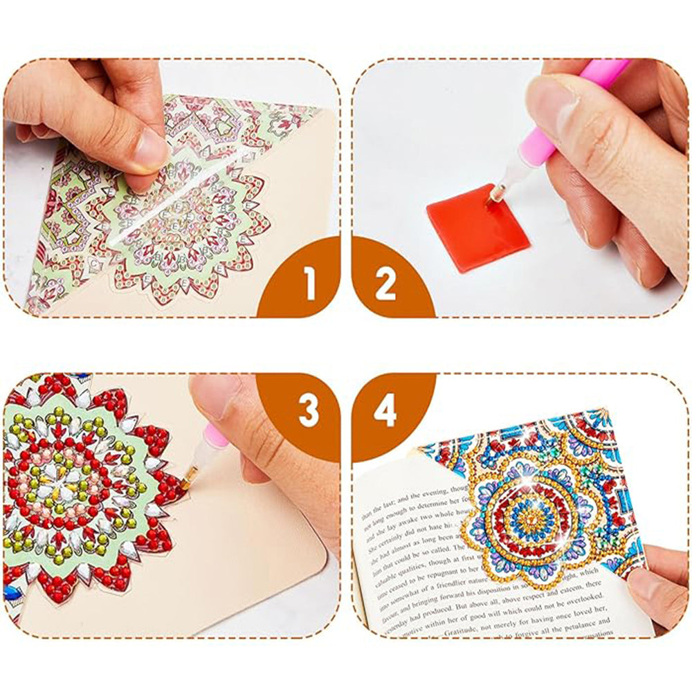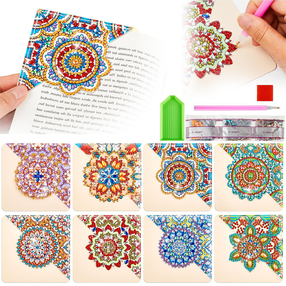 8St. Schöne Mandala PU Ecke Abdeckung Lesezeichen Set Diamond Painting