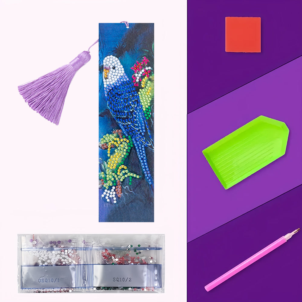 Blauer Papagei Leder Lesezeichen Diamond Painting