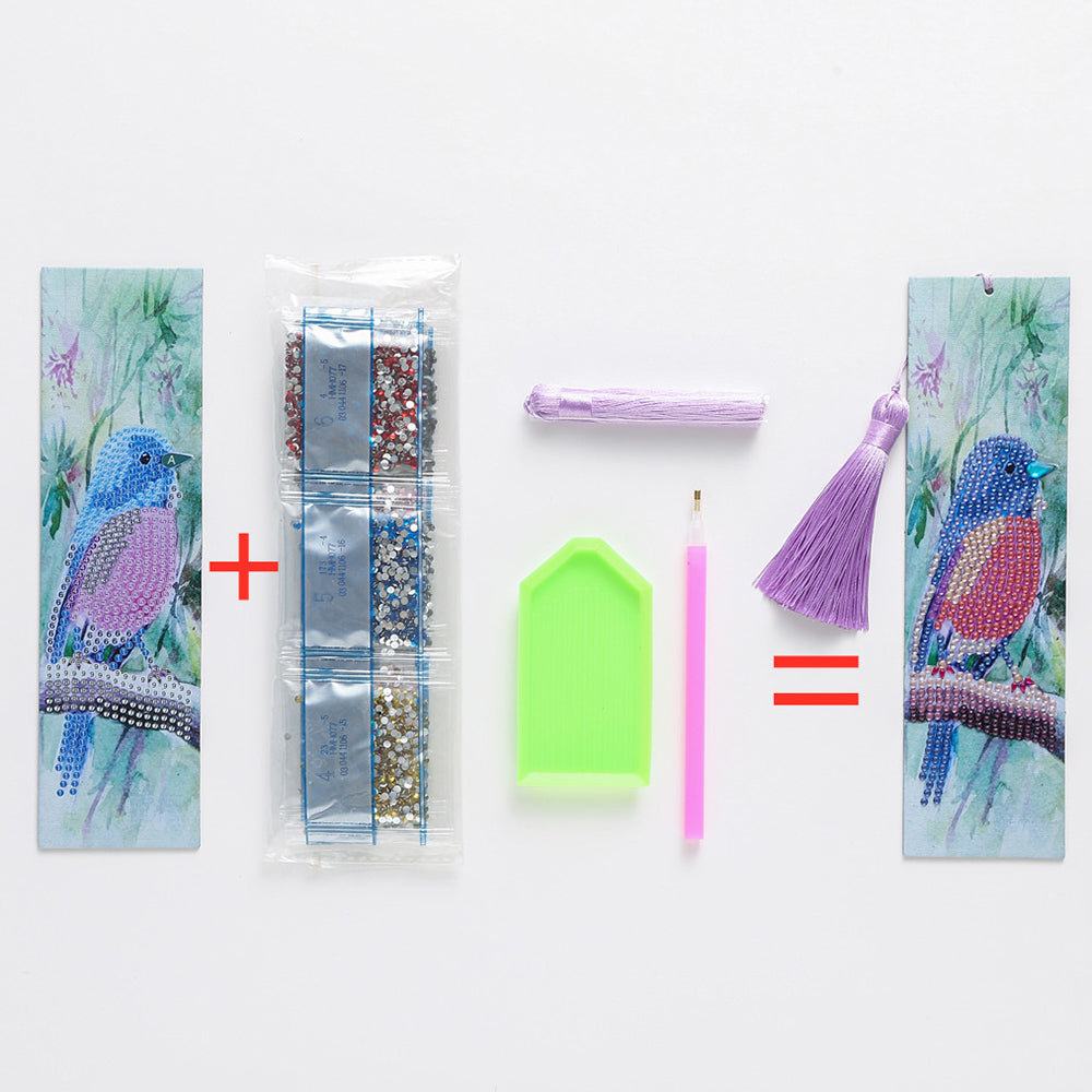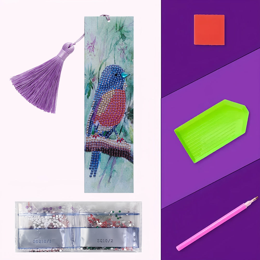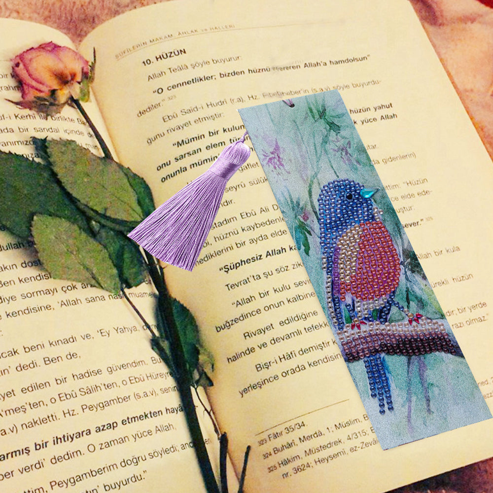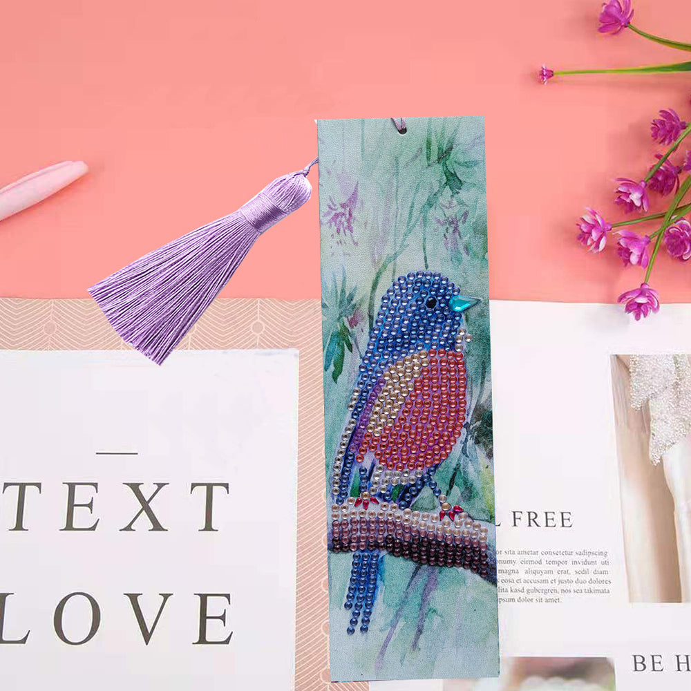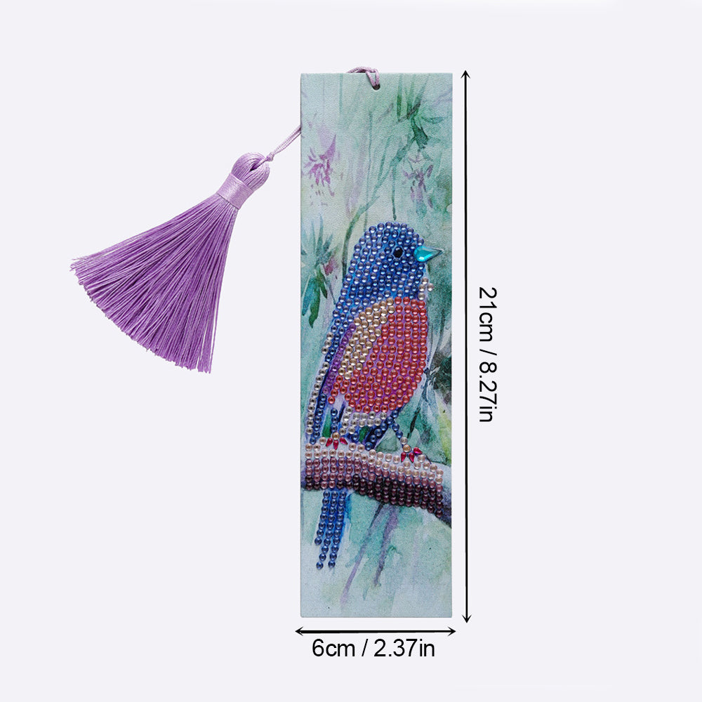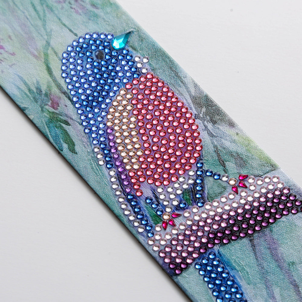 Blauer und Roter Vogel Leder Lesezeichen Diamond Painting