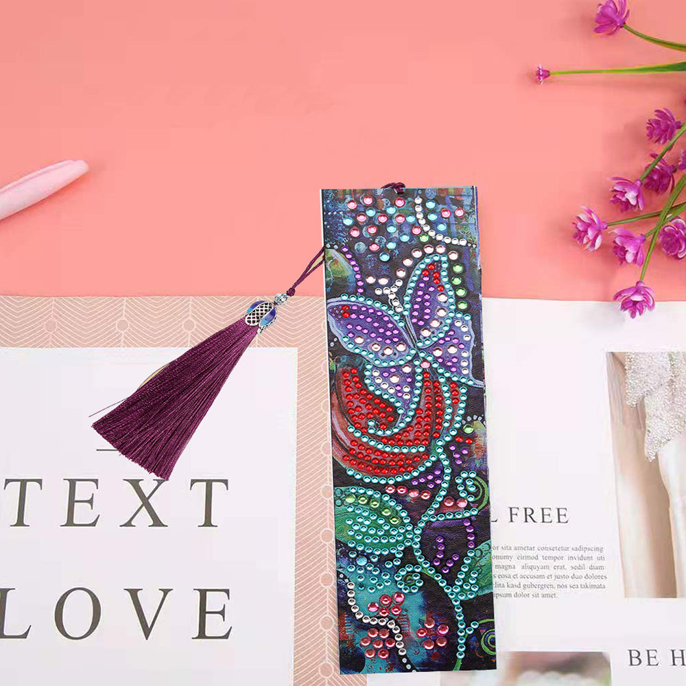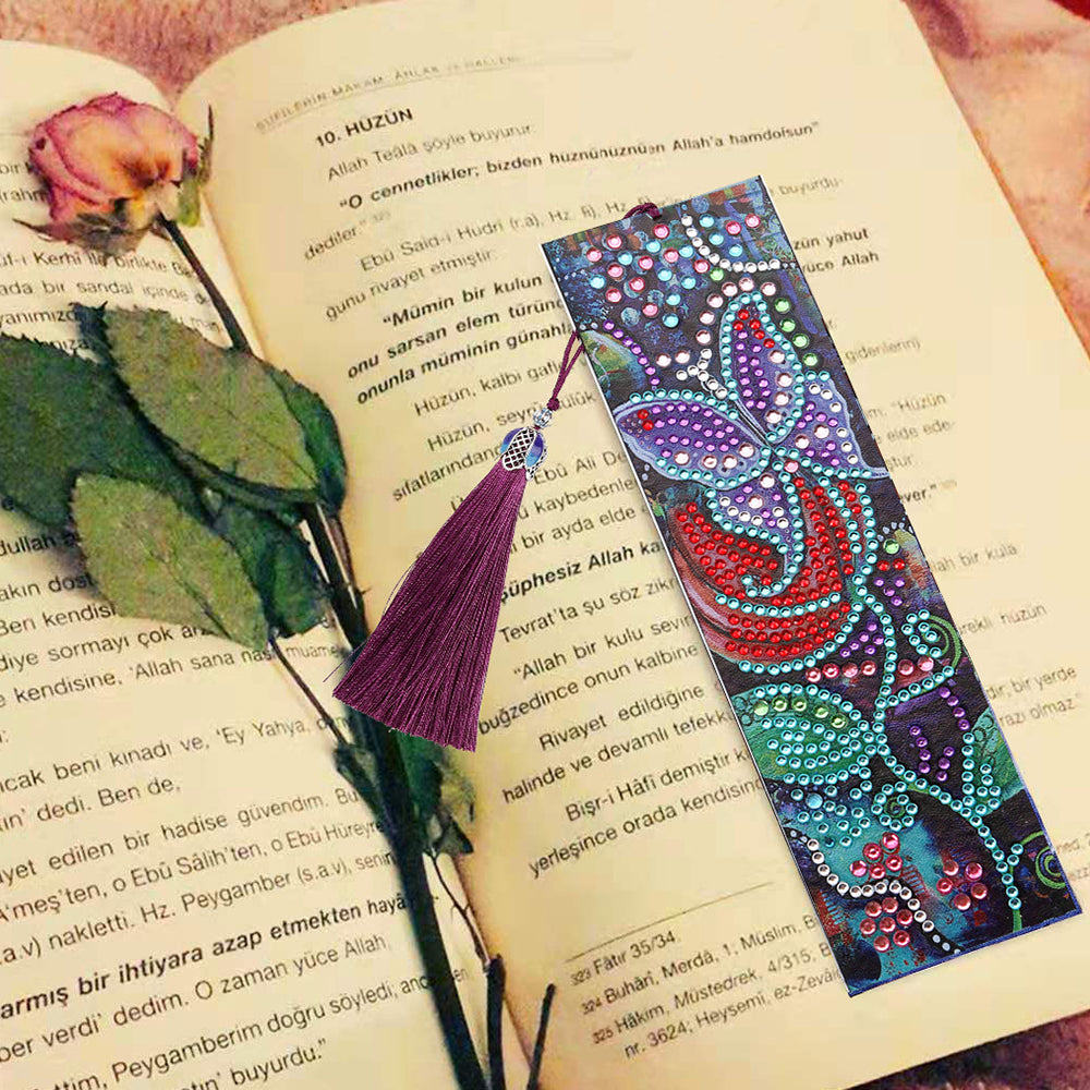 Blume und Schmetterling Leder Lesezeichen Diamond Painting
