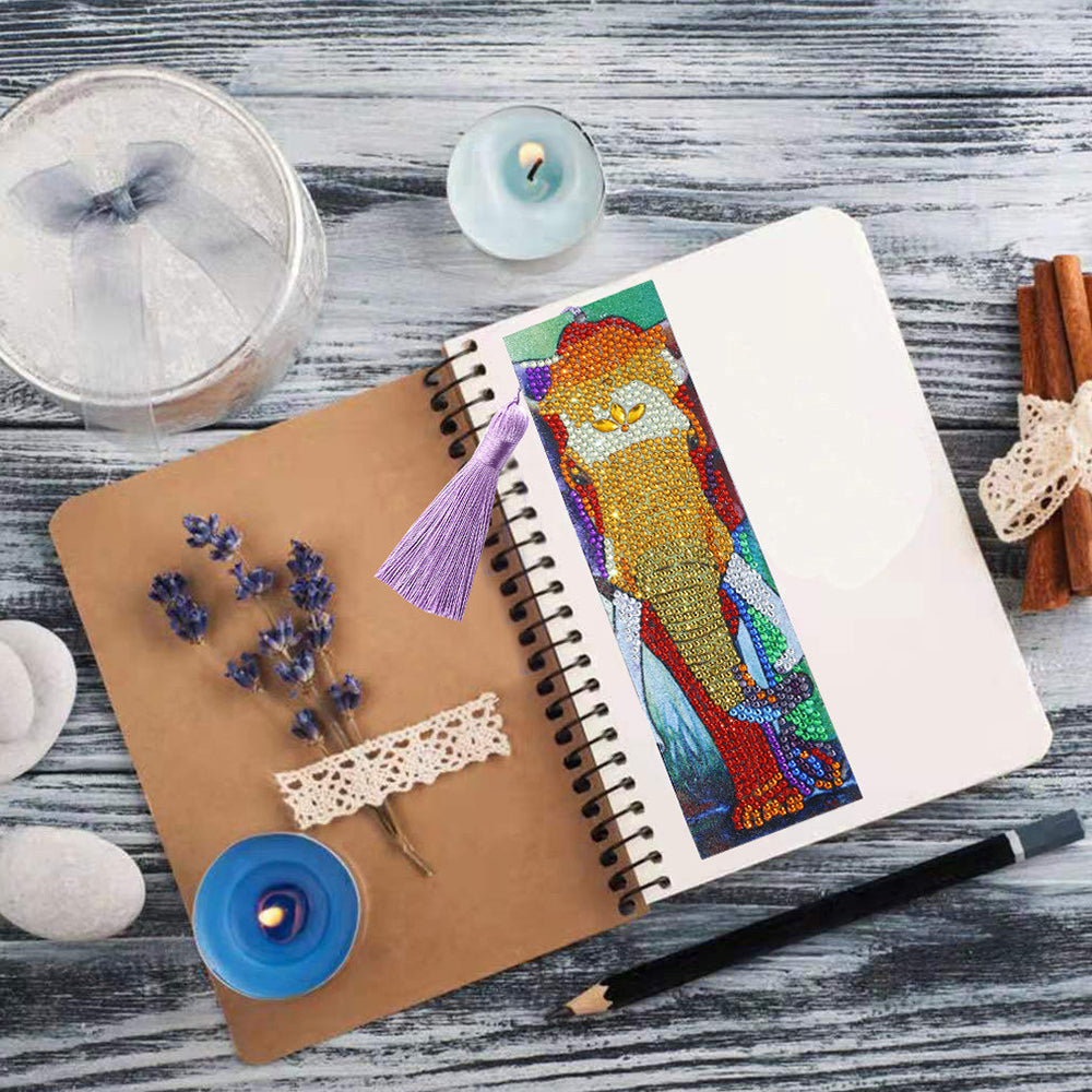 Goldener Elefant Leder Lesezeichen Diamond Painting