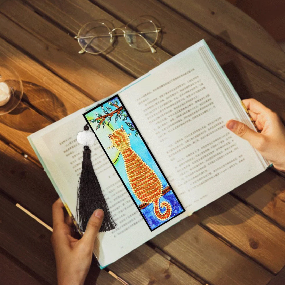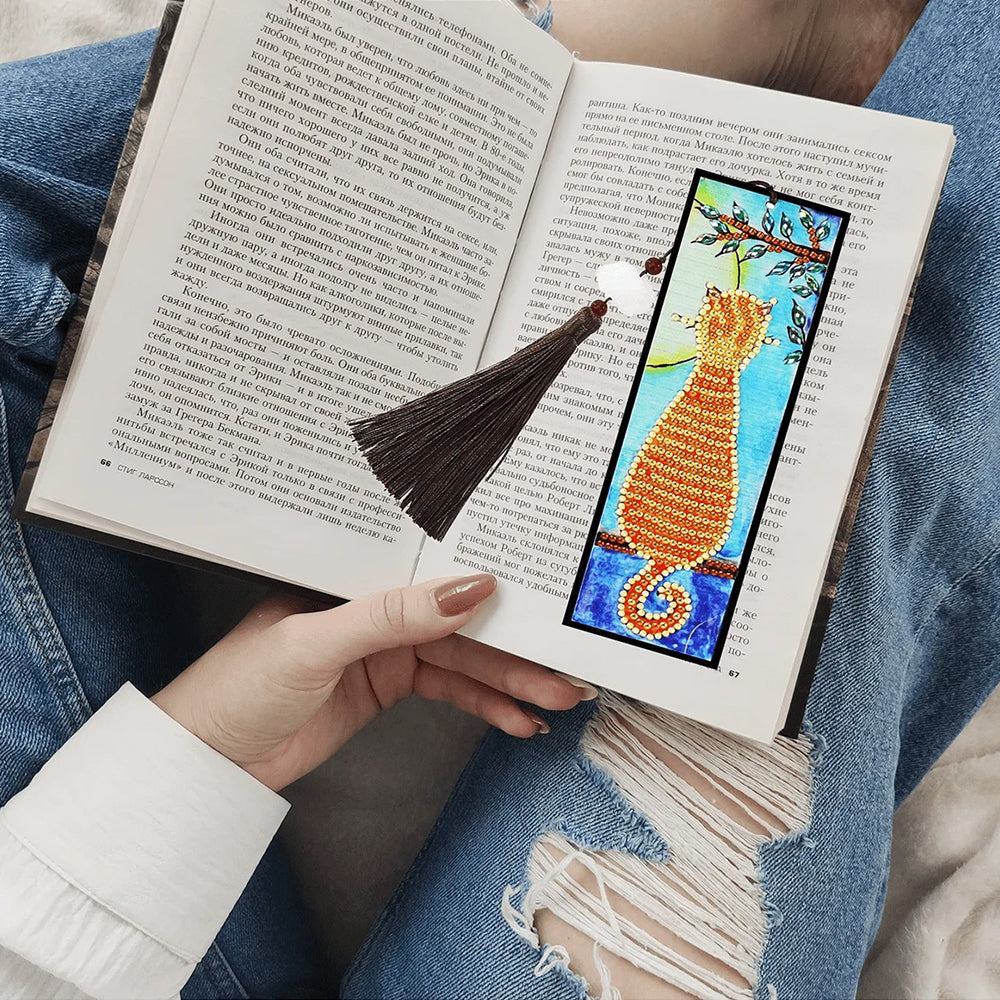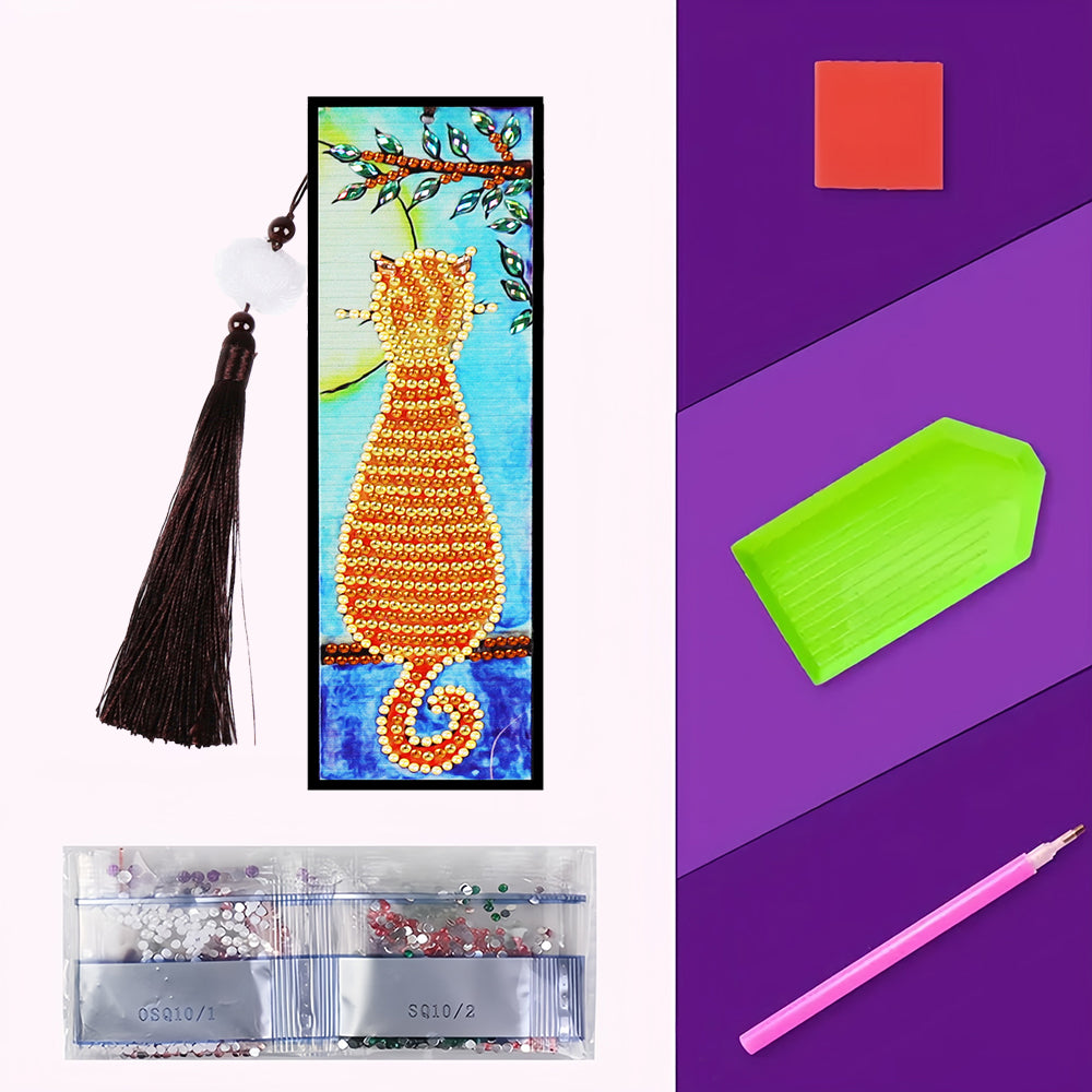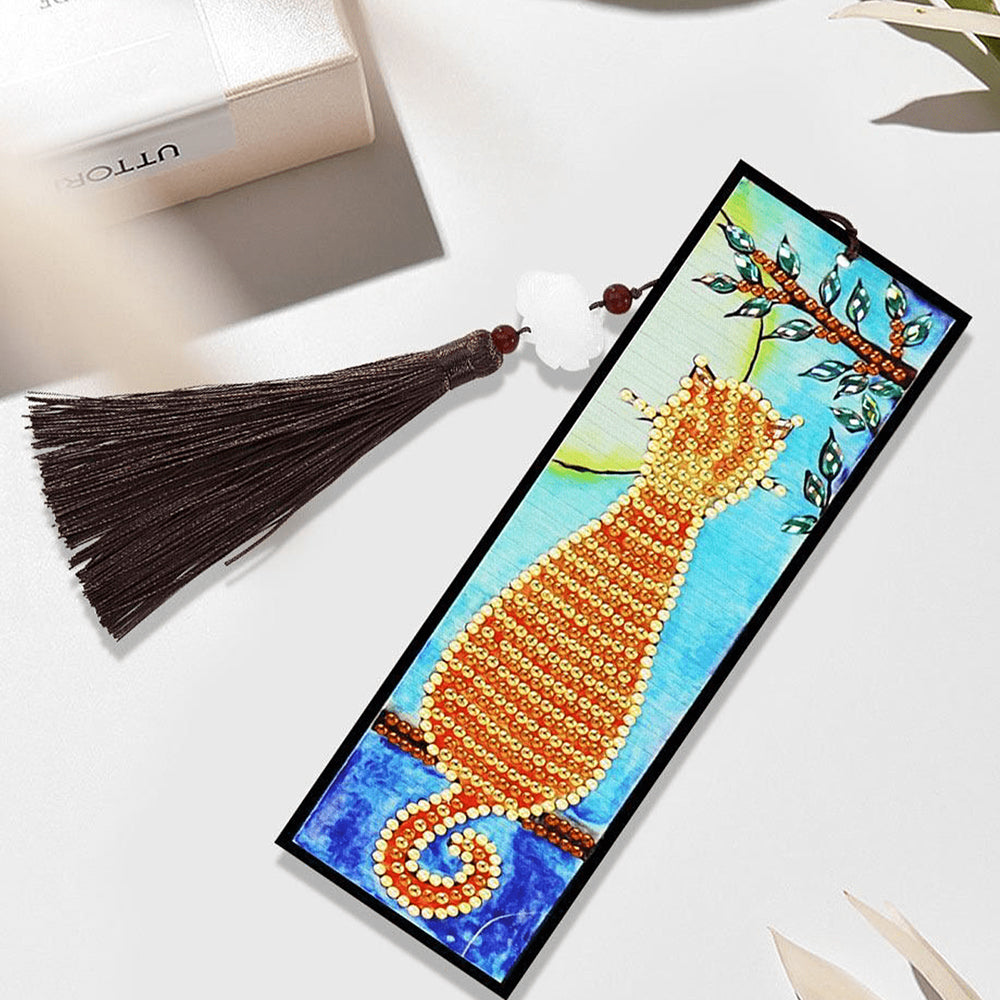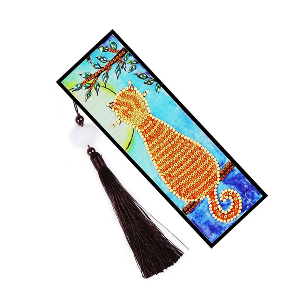 Orange Katze Leder Lesezeichen Diamond Painting