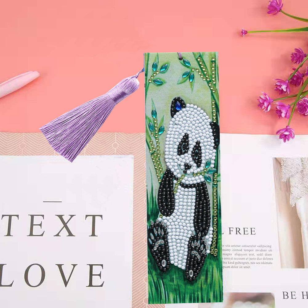 Panda isst Bambus Leder Lesezeichen Diamond Painting